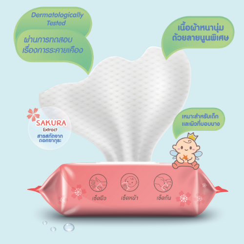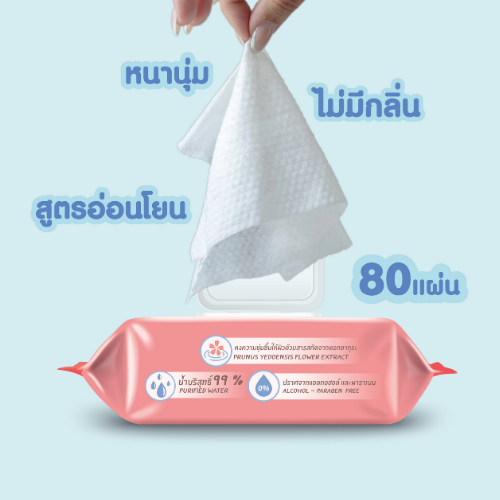[ 3 ห่อ ] Cherry Baby ทิชชูเปียก ผ้าเช็ดทำความสะอาดสูตรน้ำบริสุทธิ์ 1 ห่อ 80 แผ่น