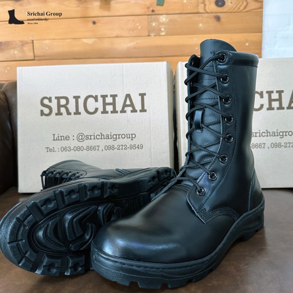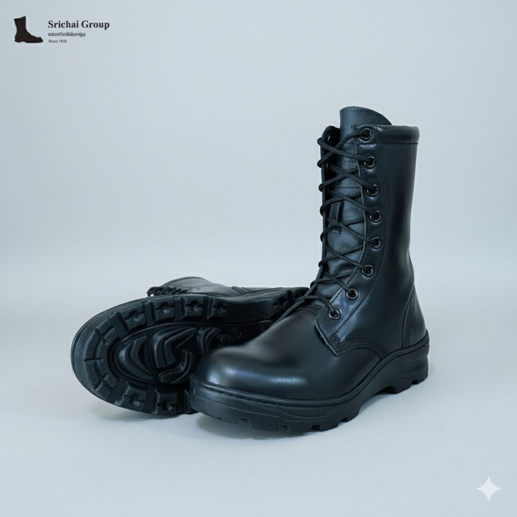 Combat Boots / คอมแบท รุ่น US03/US03C หนังขัดมัน พื้นรถถัง พื้นเบา by Srichaigroup