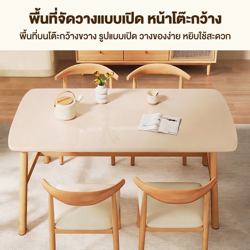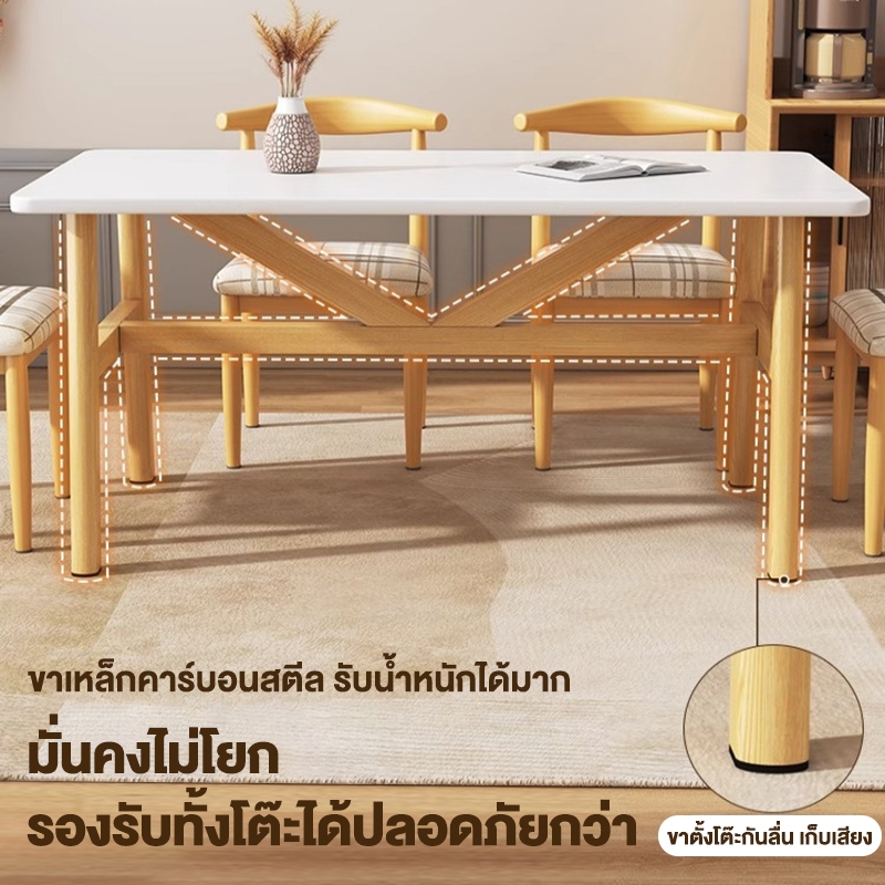 ALOVE โต๊ะกินข้าว6ที่นั่ง ทำด้วยไม้ 140/120/100CM โต๊ะทานอาหาร สไตล์ทันสมัย โต๊ะล่างมีเสาเสริม ป้องกันความชื้นและเชื้อรา
