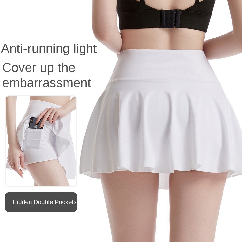 กระโปรงโยคะจีบ/กระโปรงกีฬาเปลือยเอวสูงสุภาพสตรี/การฝึกวิ่งกระโปรงสั้นเทนนิสแห้งเร็วฤดูร้อน