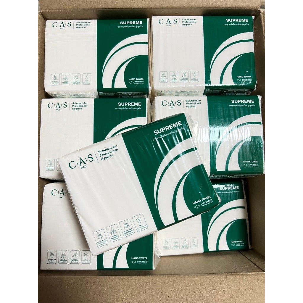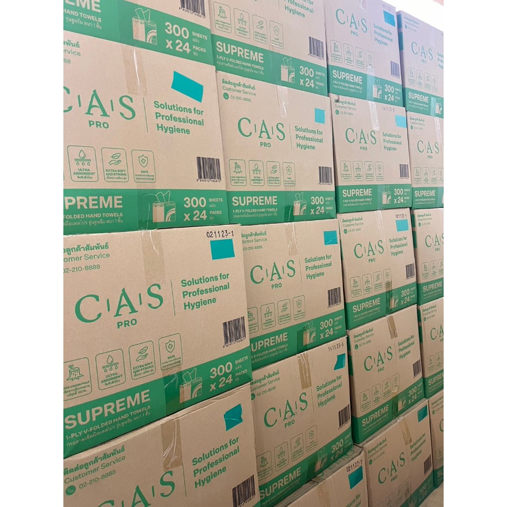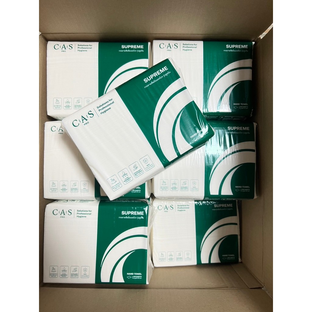 กระดาษเช็ดมือ แคสโปร รุ่น ซูพรีม V-FOLDED หนา 1 ชั้น ห่อละ 300 แผ่น SUPREME