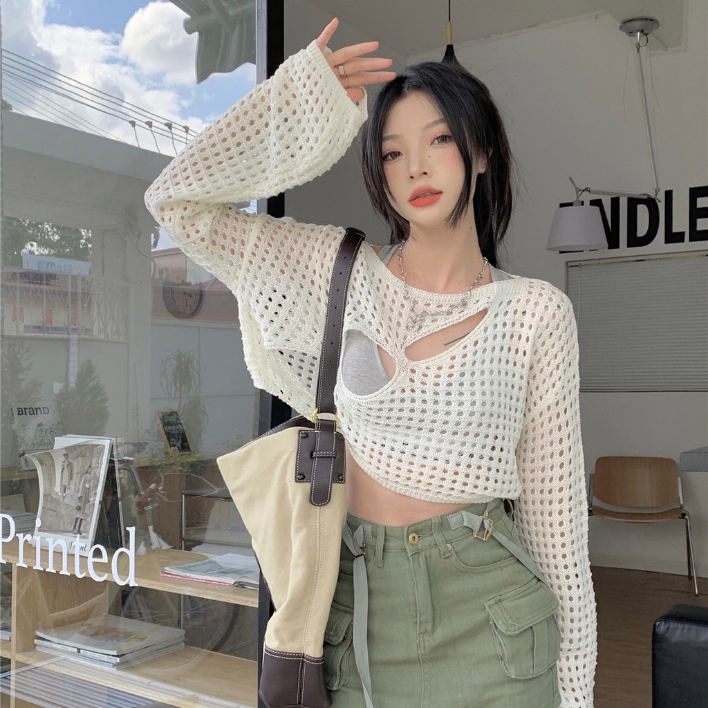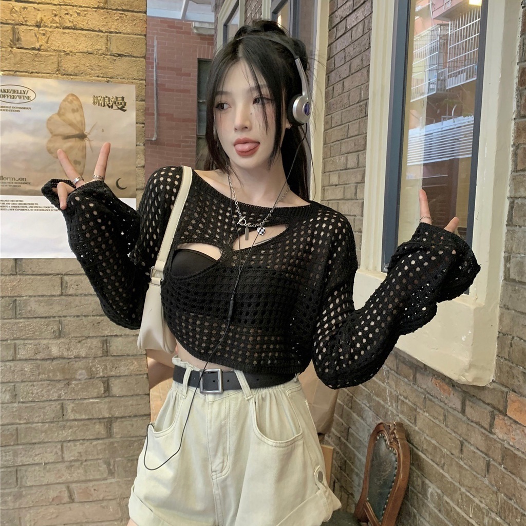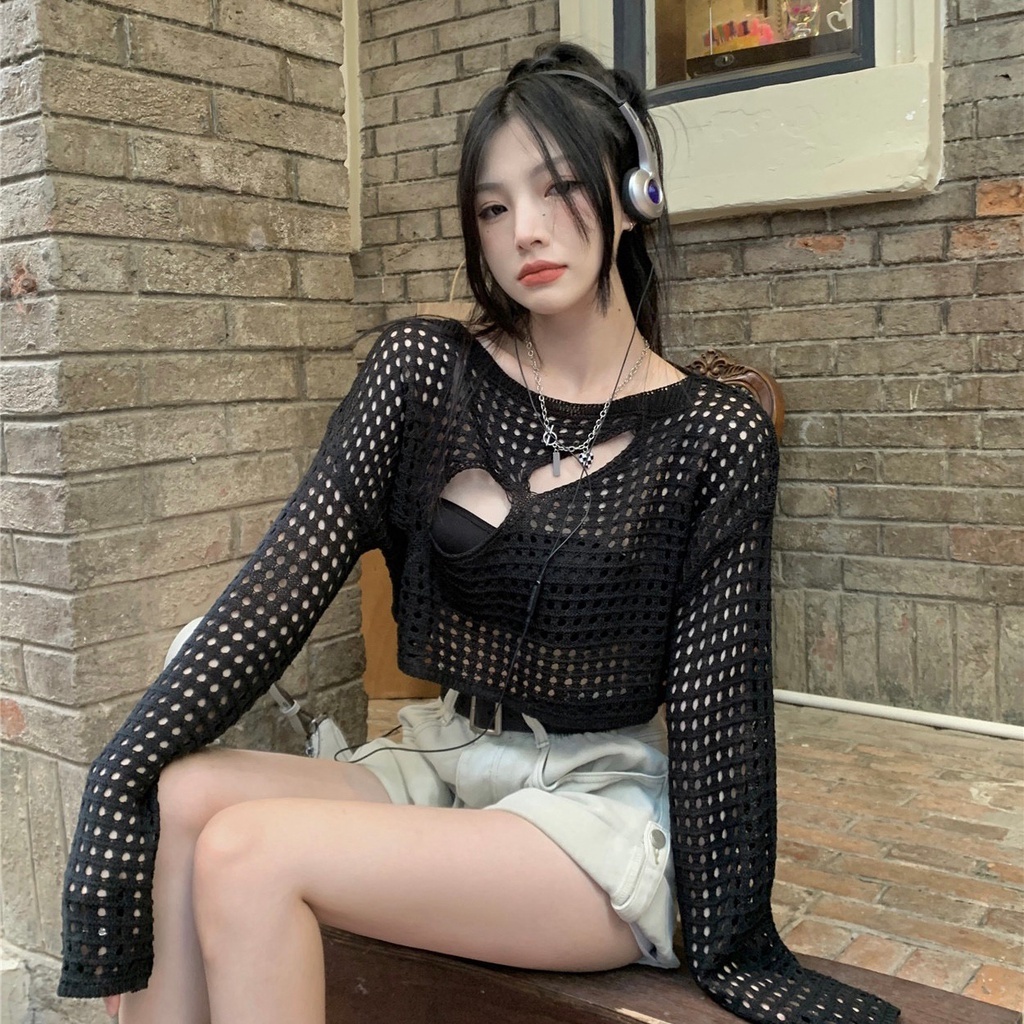 เสื้อคลุมสายถัก เสื้อคลุมซีทรูสายถัก ฉลุอกเฉียงแซ่บสุด ใส่เดียวก็เซ็กซี่ ตาข่ายลายฉลุแบบแซ๋บๆ #1502136