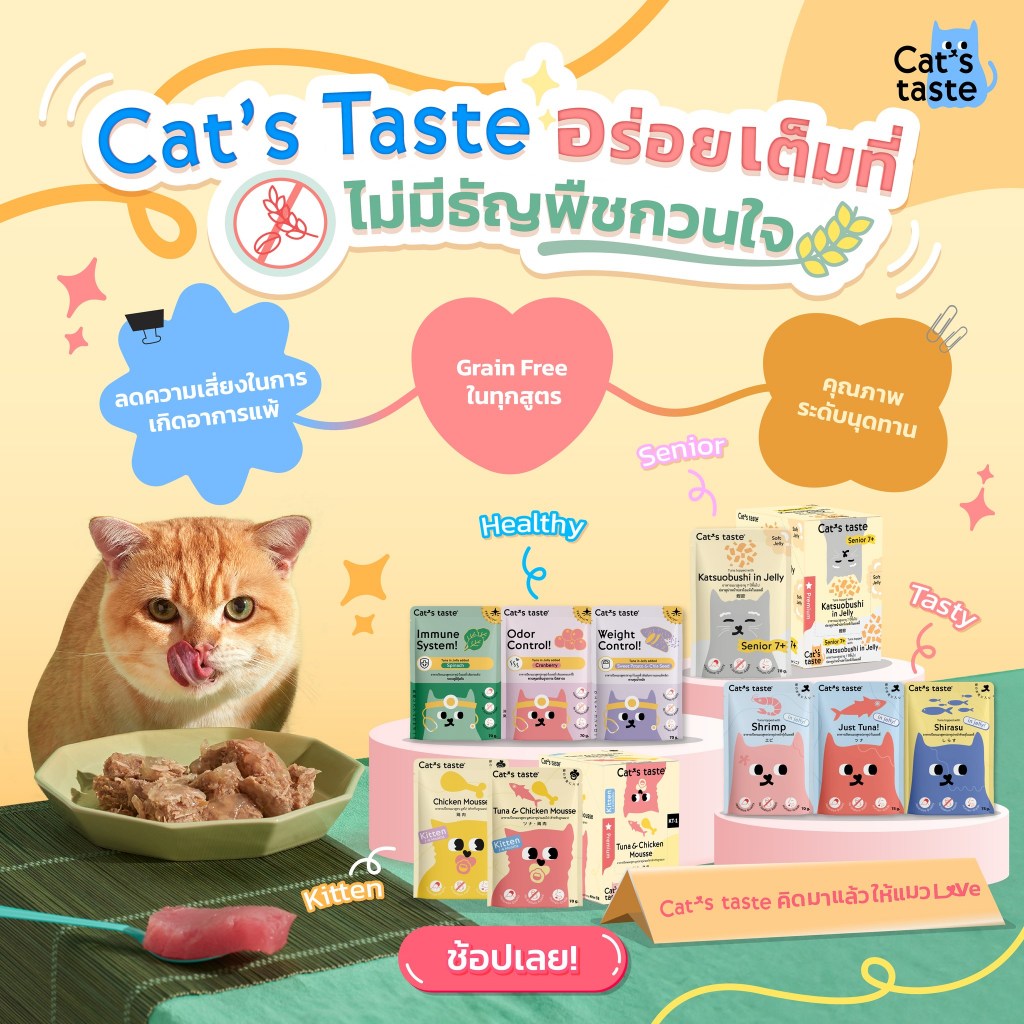 อาหารแมว พรีเมี่ยม Cat's Taste แคทเทส แบบเฮลตี้ ดูแลสุขภาพ ไม่เติมโซเดียม 70g ยกโหล 12 ซอง