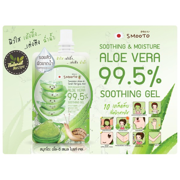 (1 ซอง) สมูทโตะ อโล อี สเนล ไบรท์ เจล Smooto Aloe-E Snail Bright Gel Aloe Vera 50 g.
