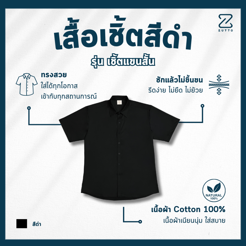ZUTTO เสื้อเชิ้ตสีดำพรางพุง ไซส์ใหญ่สำหรับคนอ้วน