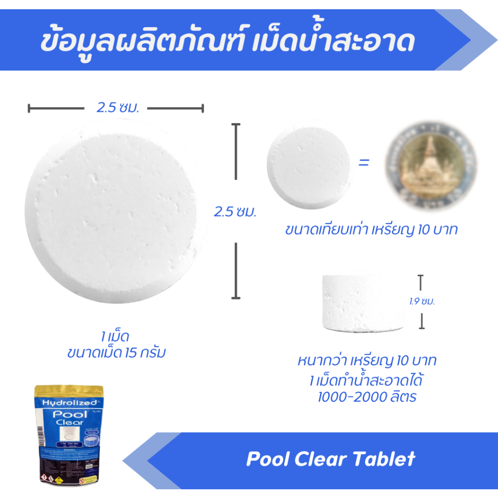 คลอรีนเม็ดฟู่ 90% สระว่ายน้ำ แก้น้ำเขียว ตะไคร่น้ำ ปรับน้ำใส ฆ่าเชื้อโรค l พลู เคลียร์ ถุง 500 g