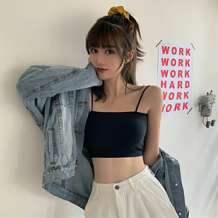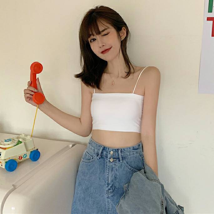[ส่งจากไทย] 𝑩𝒓𝒂𝑩𝒓𝒂𝑩𝒓𝒂 #bra-059 ครอปครึ่งตัว Crop top เกาะอกพร้อมสาย 5 สีให้เลือก