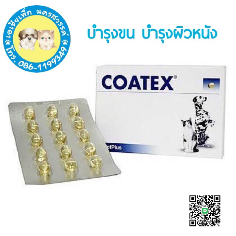 Coatex 60 caps โคเทเท็ก อาหารเสริม บำรุงขนและผิว แบบเม็ด สำหรับสุนัข บรรจุ 60 เม็ด