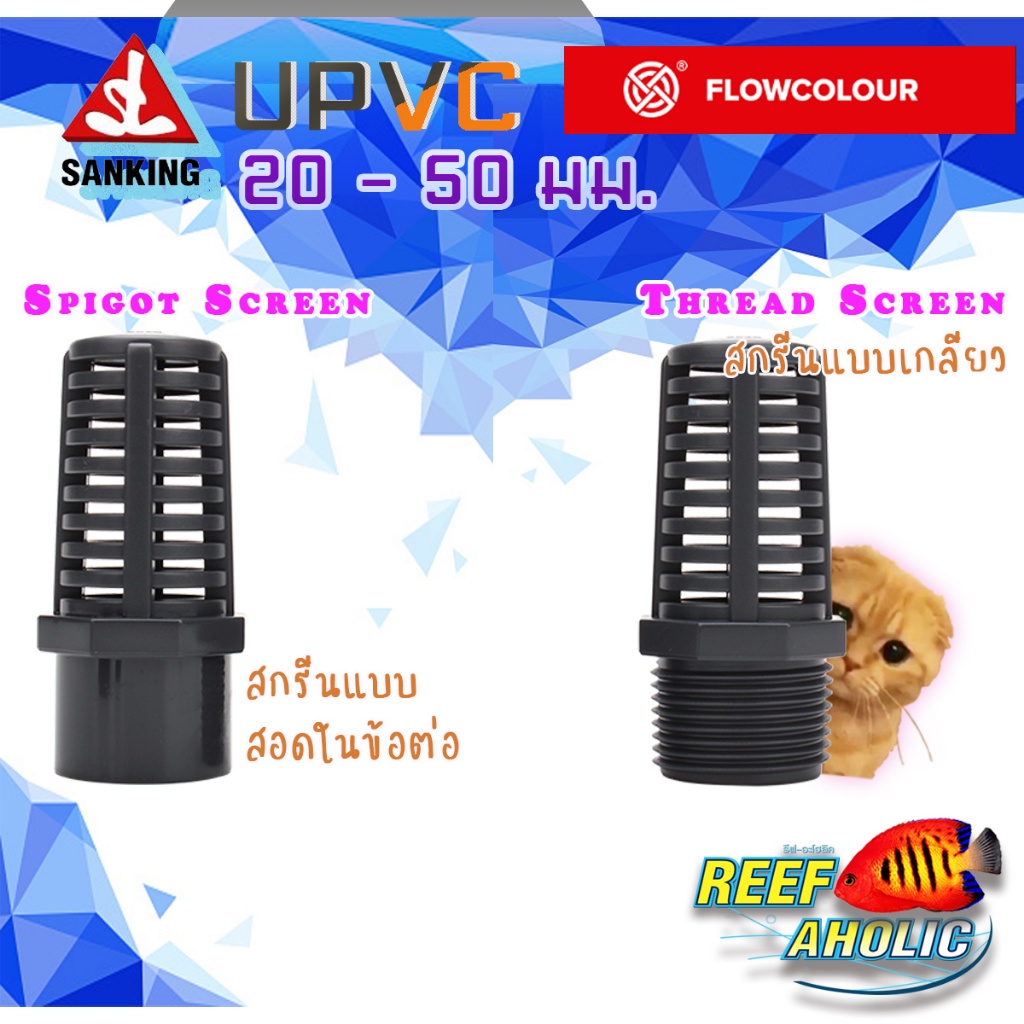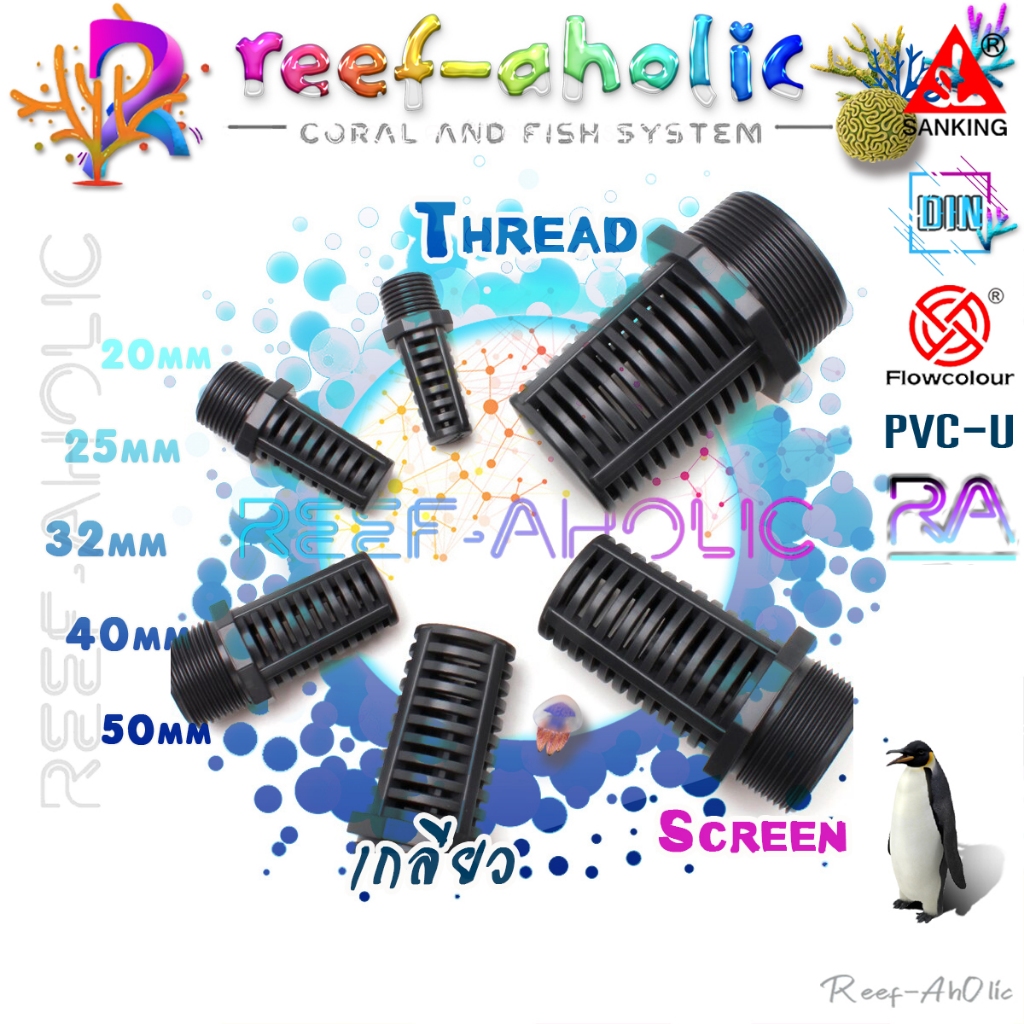 Reef-Aholic Flowcolour ตะแกรงกั้นปลายท่อ UPVC 20 - 50 mm. แบบเกลียว และแบบสอดในข้อต่อ ไม่ลดแรงดูด