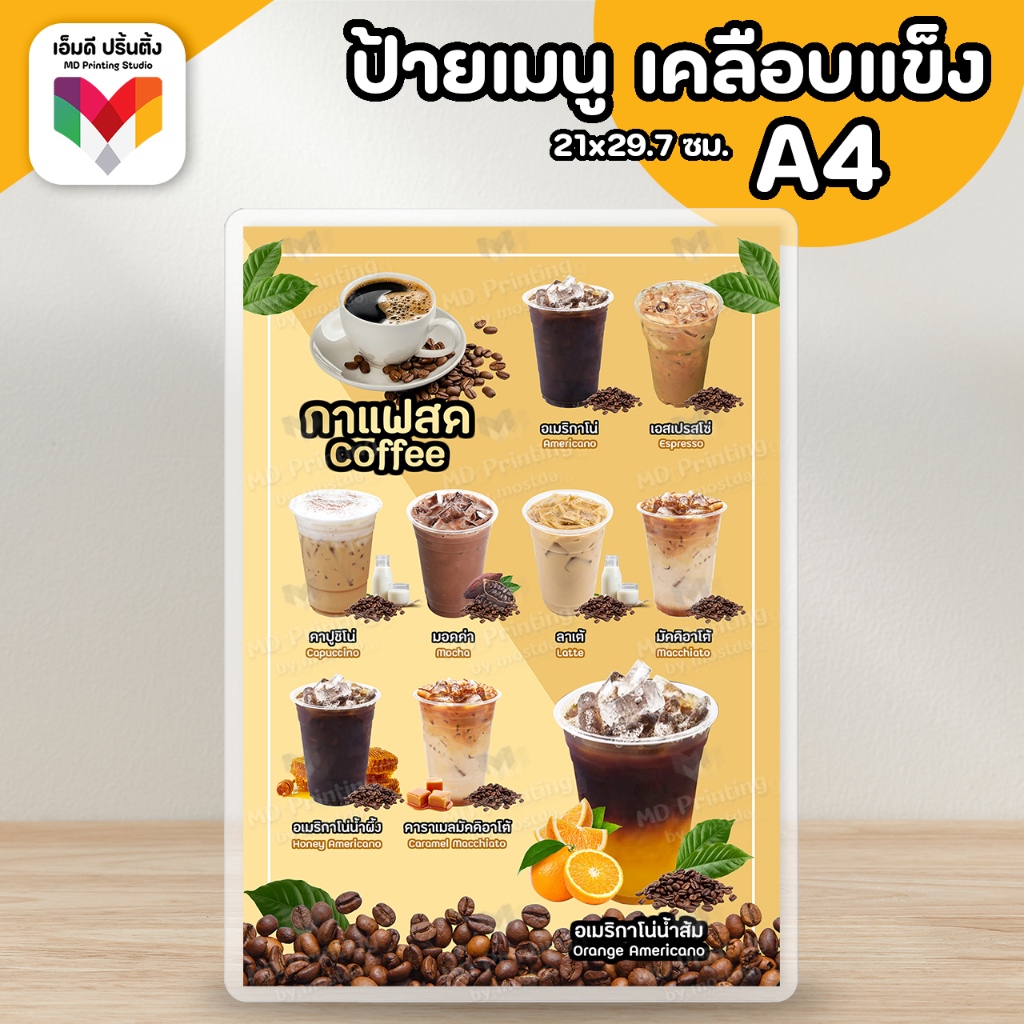 🔥ป้ายเมนูเครื่องดื่ม ป้ายกาแฟ ป้ายชานม ขนาดA4⚡️เคลือบใสกันน้ำอย่างดี ☕️