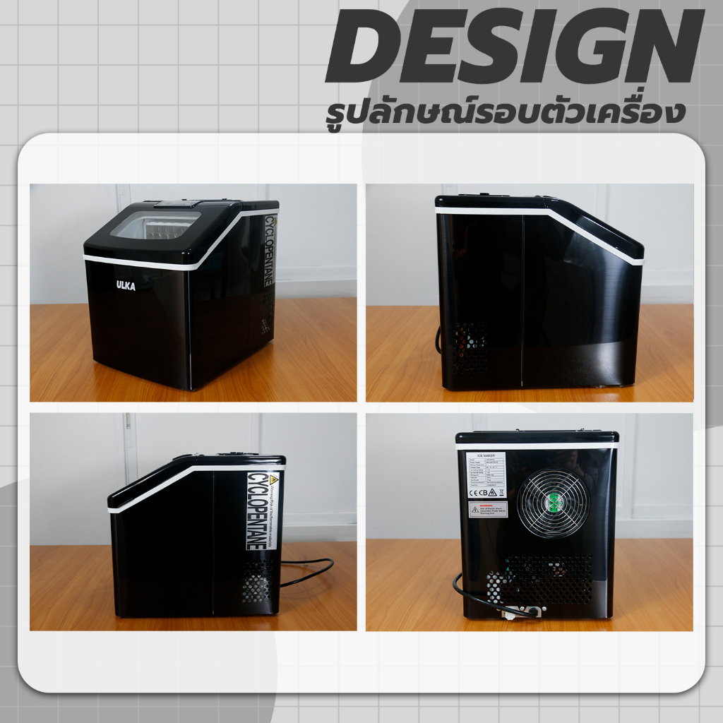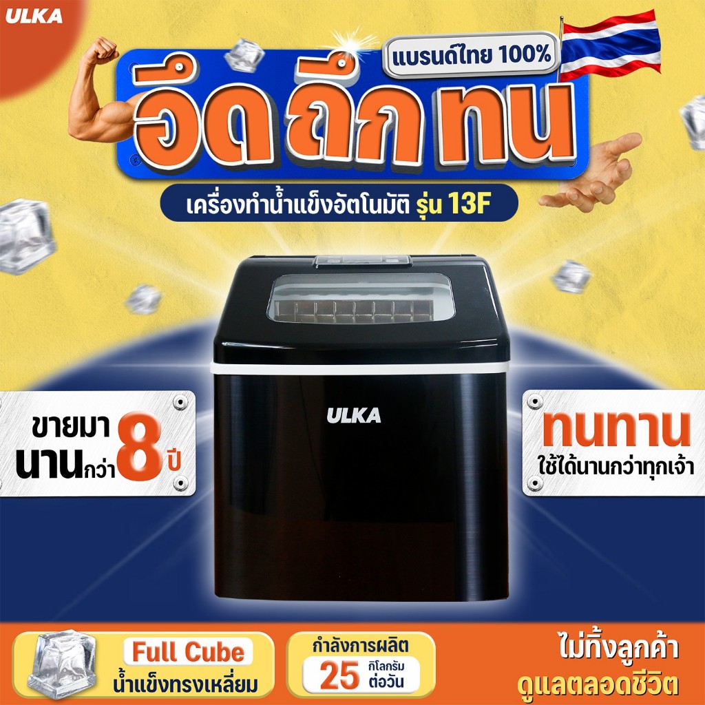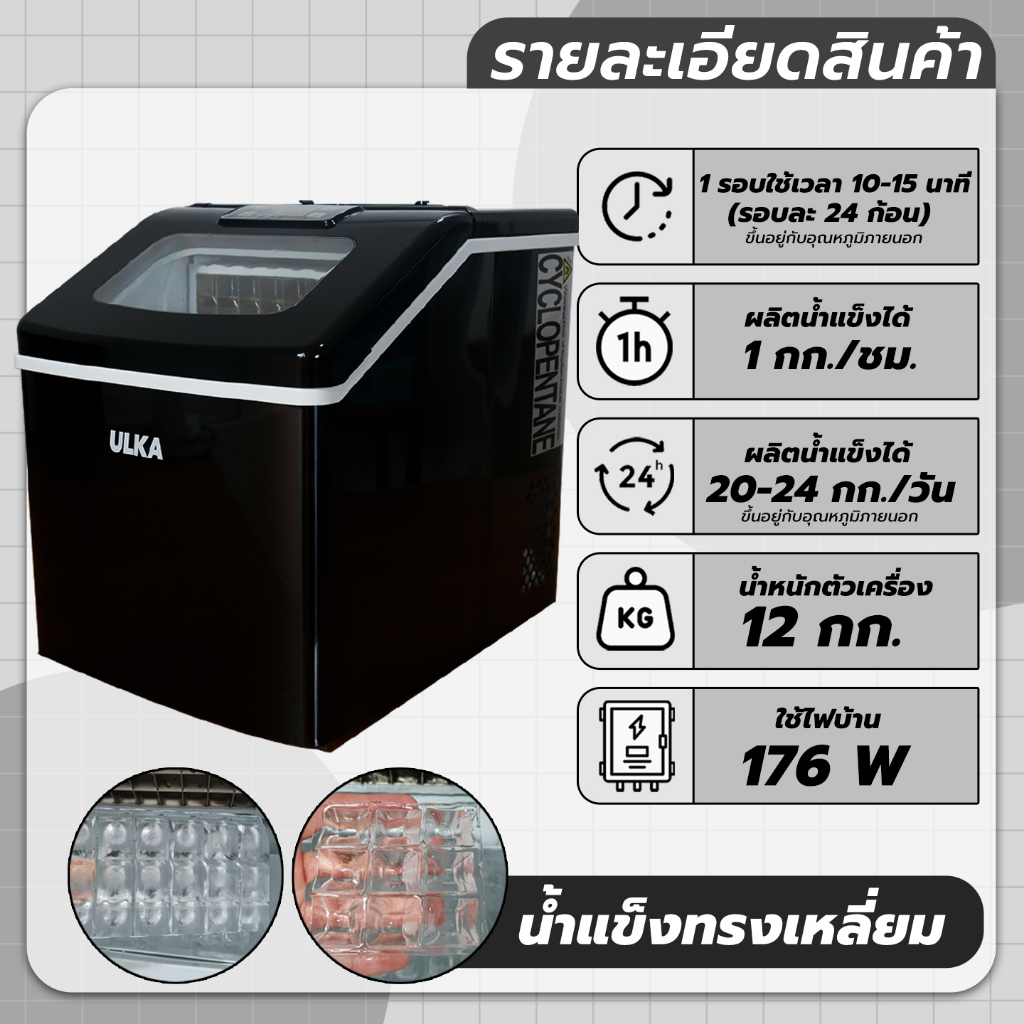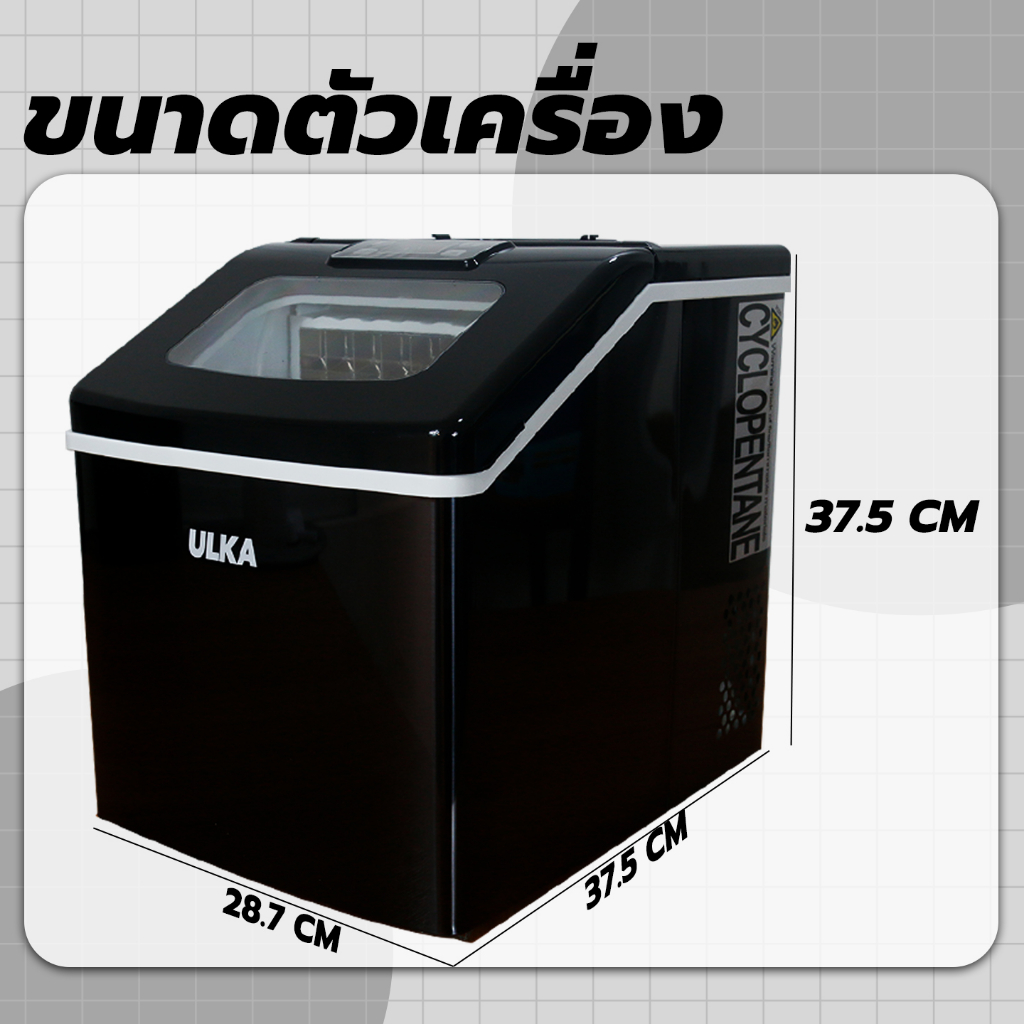 เครื่องทำน้ำแข็ง น้ำแข็งทรงเหลี่ยม 25 กก/วัน ULKA 13F-BLACK WINDOWS เครื่องผลิตน้ำแข็ง ใช้งานในบ้าน