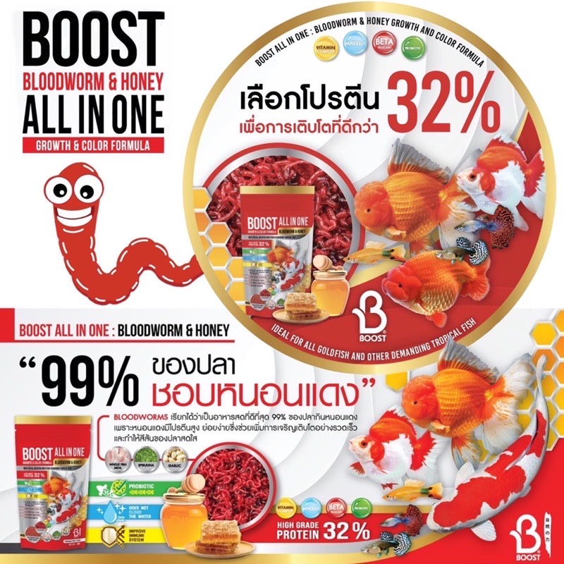 BOOST All in one (อาหารปลาสวยงามสูตรเร่งโต เร่งสี ผสมโปรตีนจากหนอนแดงและน้ำผึ้ง)