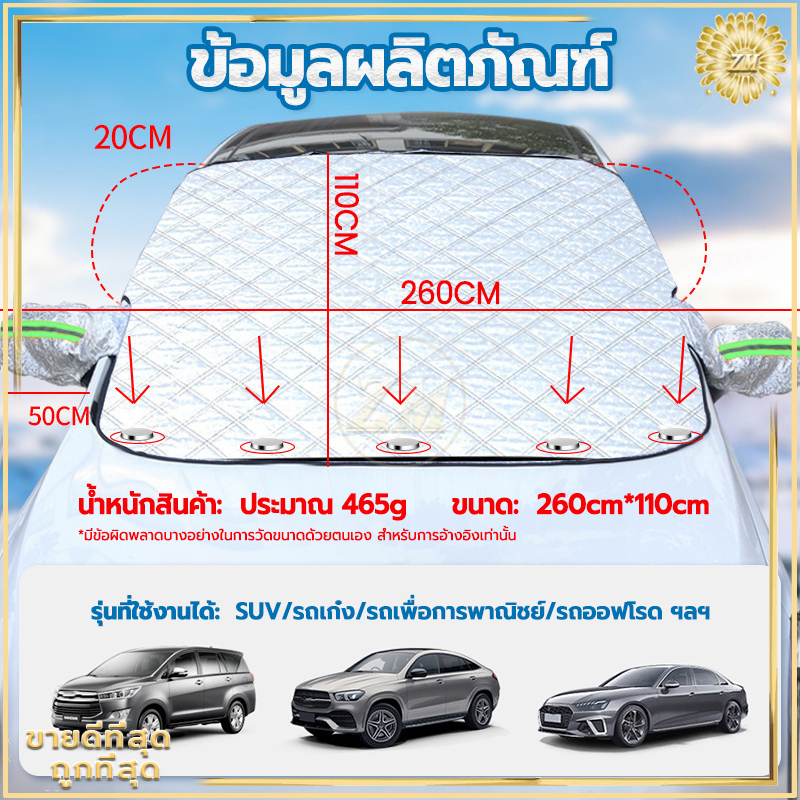 ผ้าบังแดดรถยนต์ ที่บังแดดรถยนต์ 260*110CM ผ้าคลุมหน้ารถ ผ้าคลุมรถยนต์ ลดความร้อนอบอ้าวภายในรถได้ดี กันแดดและกันฝุ่น