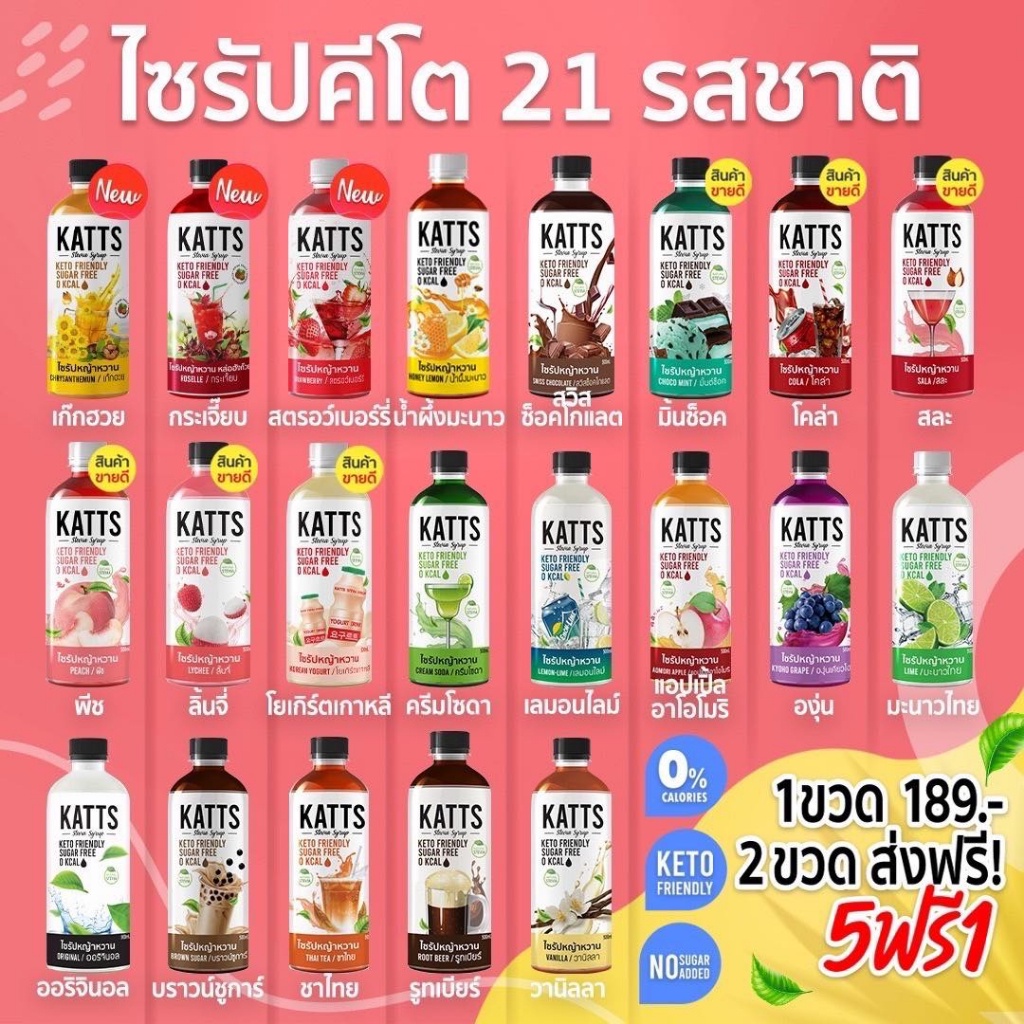 Keto ไซรัปคีโต Katts มีหลายรสชาติ ขนาด 500 ml.ส่งฟรี