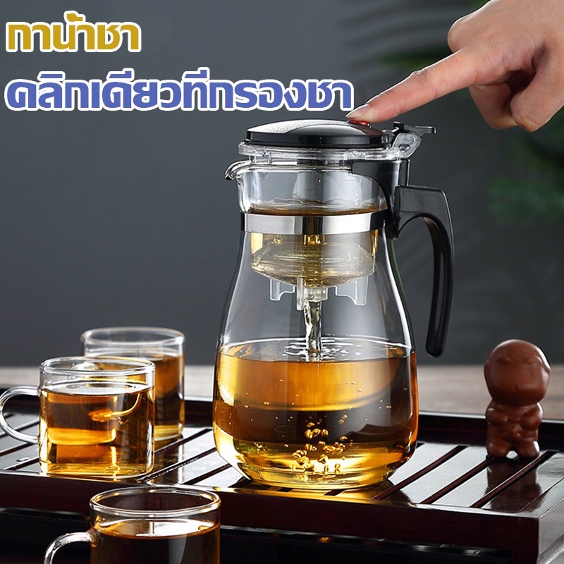 กาน้ำชา แก้วชงชา Tea pot กาน้ำชาทรงกลมแบบใส กาชงชา กาน้ำชงชา พร้อมที่กรองชา กากรองชา รับประกันไทย