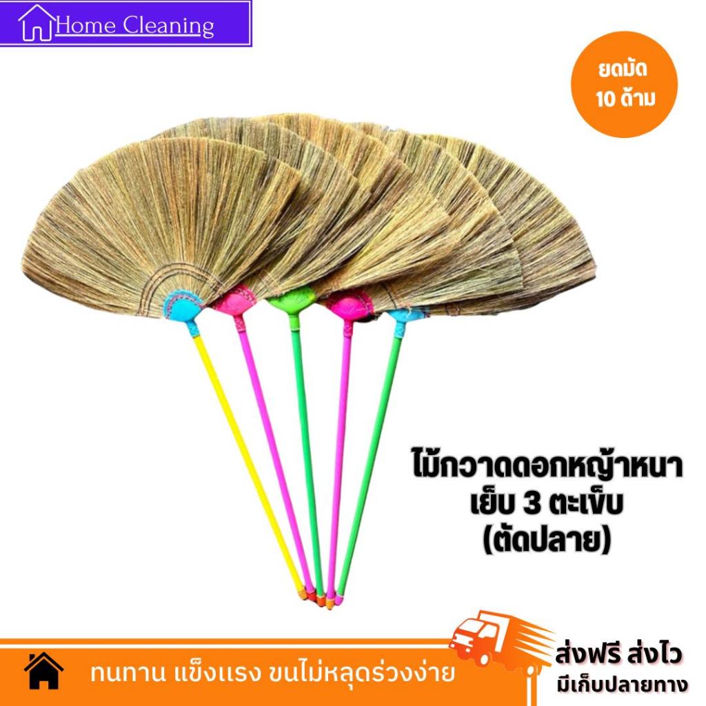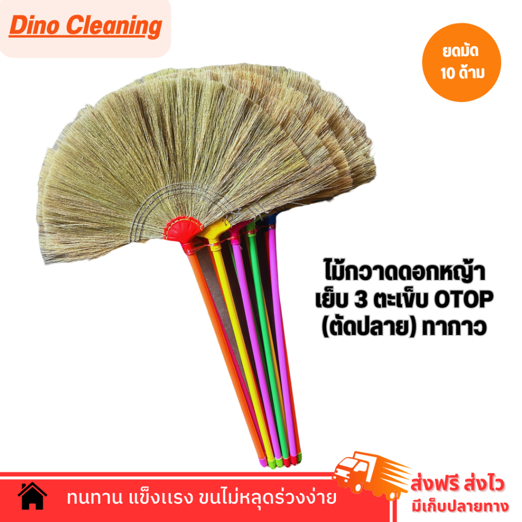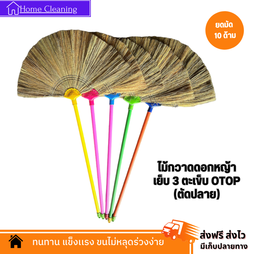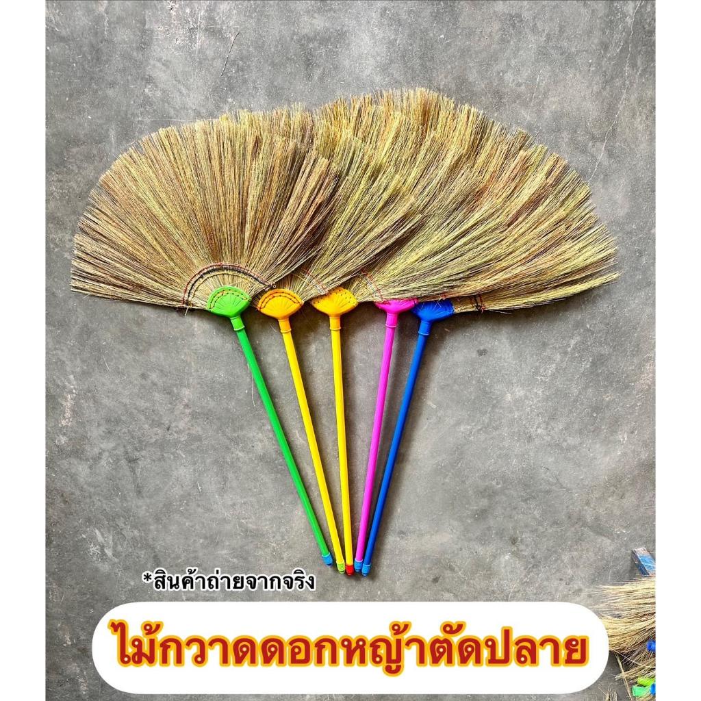 ไม้กวาดดอกหญ้า รุ่นหนา (ตัดปลาย) ยกมัด 10 และ 20 ด้าม งาน OTOP ทากาว ด้ามพลาสติกเกรด A