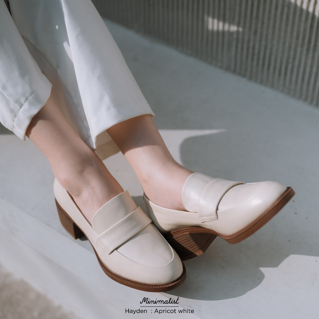 𝐌𝐈𝐍𝐈𝐌𝐀𝐋𝐈𝐒𝐓 รองเท้าหนังวัวแท้ รุ่น Hayden (Apricot white) หนังนิ่ม สูง 2 นิ้วแต่ไม่เมื่อย