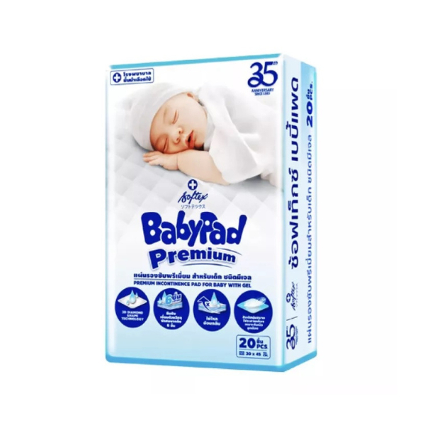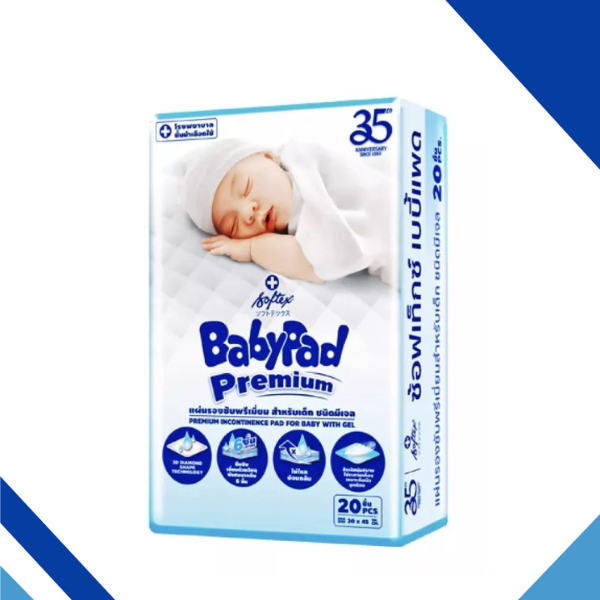 Softex Baby Pad Premium ซอฟเท็กซ์ เบบี้แพด แผ่นรองซับ ดูดซึมเร็ว ขนาด 30 x 45 cm จำนวน 20 ชิ้น 21204