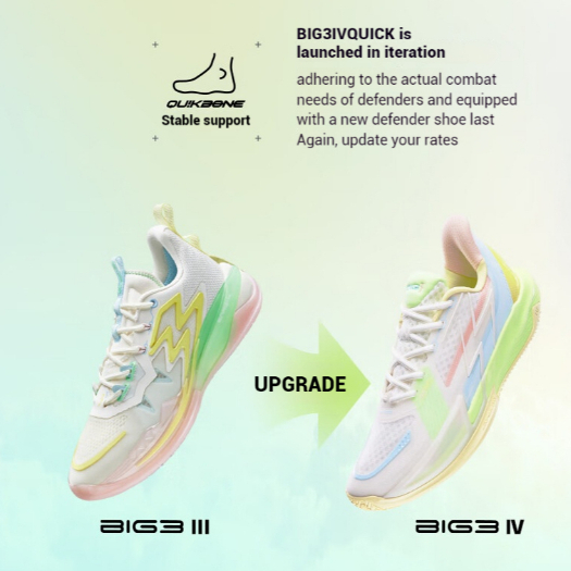 361 Degrees Big3 4.0 Quick รองเท้าบาสเก็ตบอลสำหรับผู้ชาย รองเท้าผ้าใบหุ้มข้อต่ำที่ทนทานต่อการสึกหรอ 572321105