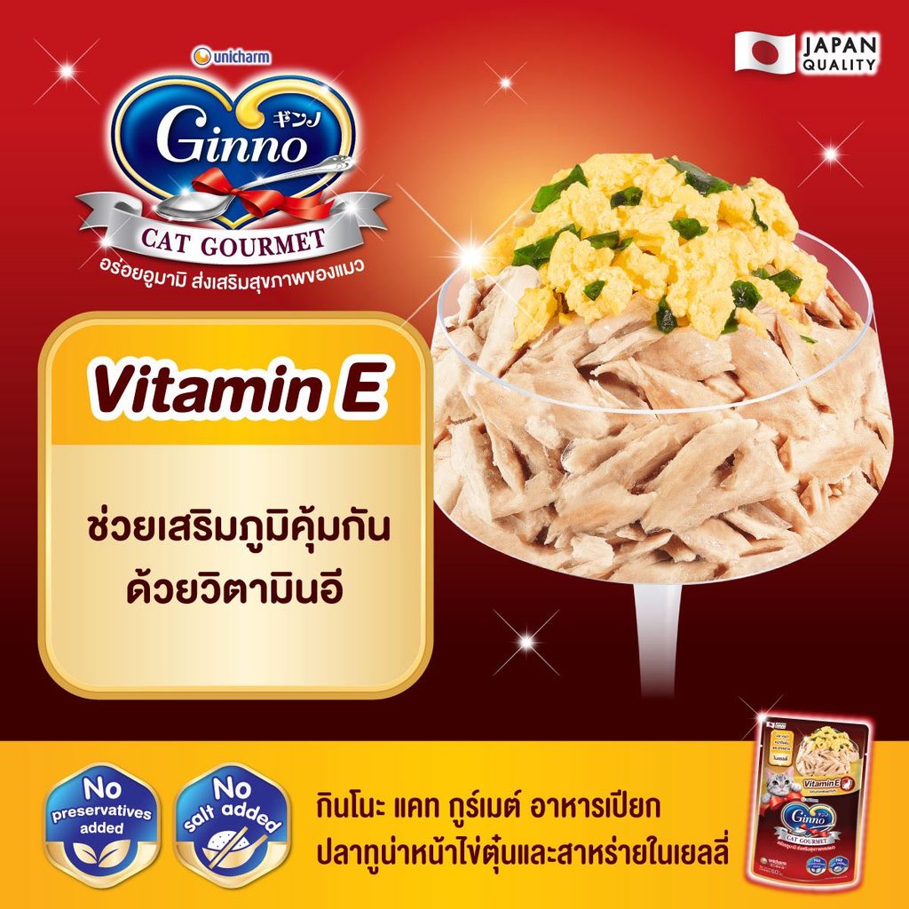 Ginno กินโนะ อาหารเปียกแมว เกรดพรีเมี่ยม ไม่เติมเกลือ ขนาด 60 g