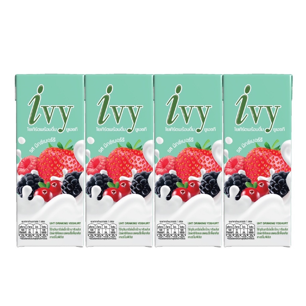ไอวี่ โยเกิร์ตพร้อมดื่ม ยูเอชที รสมิกซ์ เบอร์รี 180 มล.แพ็ค 4 กล่อง Ivy