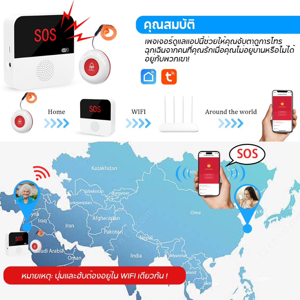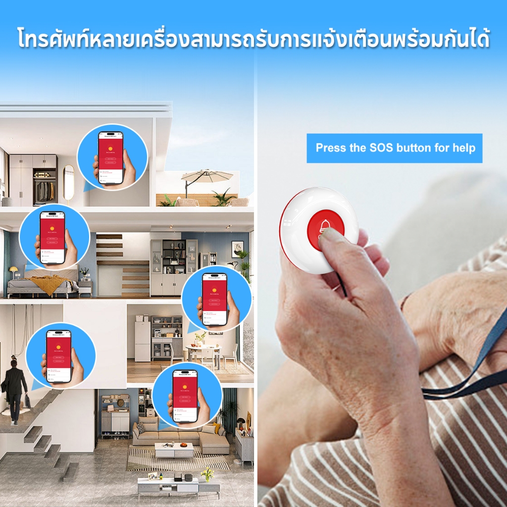 Daytech กริ่งฉุกเฉินผู้สูงอายุ WiFi โรงพยาบาล/ห้อง/ห้องน้ำ ปุ่มช่วยเหลือ Tuya app No distance limit