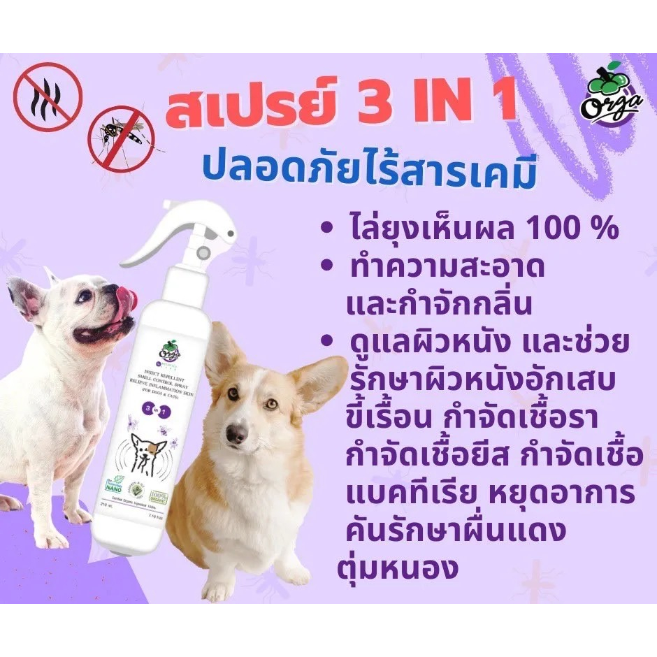Orga Organic Pets ชุดดูแลผิวหนัง สเปรย์ 3in1 + แชมพูอาบน้ำ (สูตรสำหรับน้องหมา) สเปรย์อาบแห้ง กำจัดกลิ่น สะอาด ปลอดภัย