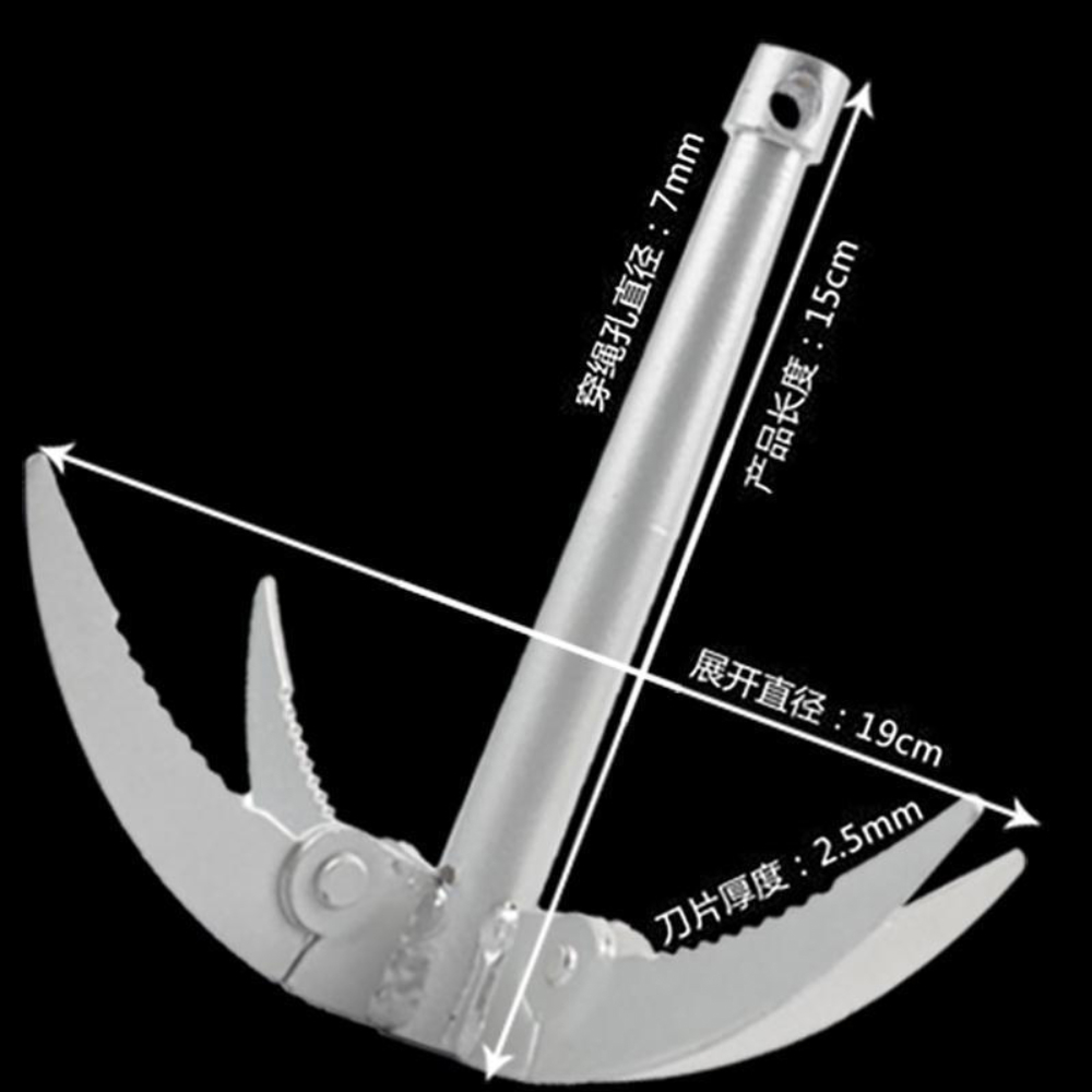 poodoo สมอเรือ มีดทอดสมอ สี่กรงเล็บ พับได้ สำหรับเรือทั่วไป มีรูสำหรับผูกเชือก