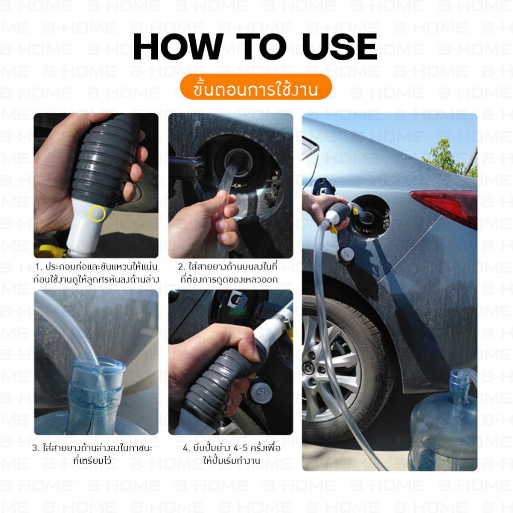 สายดูดน้ำมัน ปั๊มมือบีบ พร้อมสายยาง B-HOME ปั๊มน้ำมันมือบีบ สายยางดูดน้ำมัน manual water pump