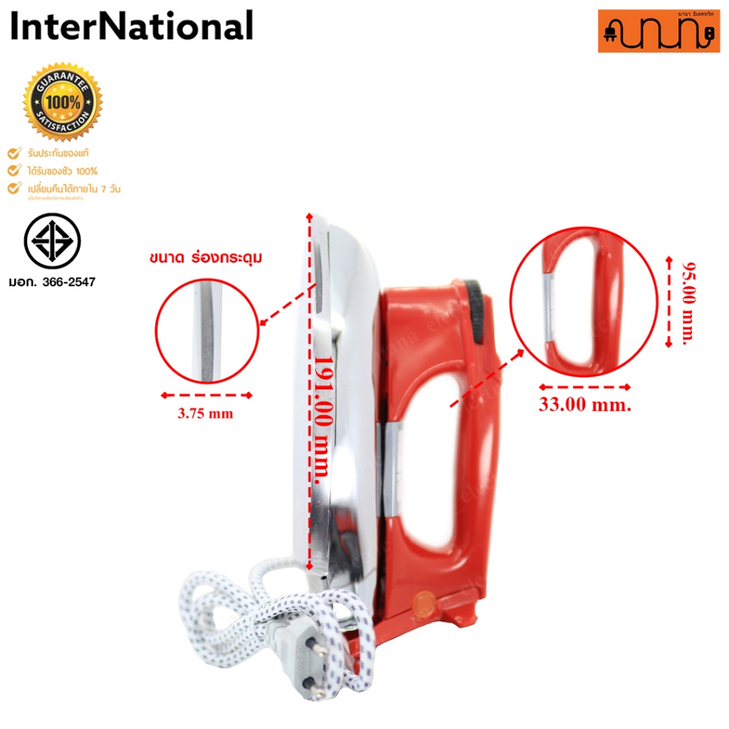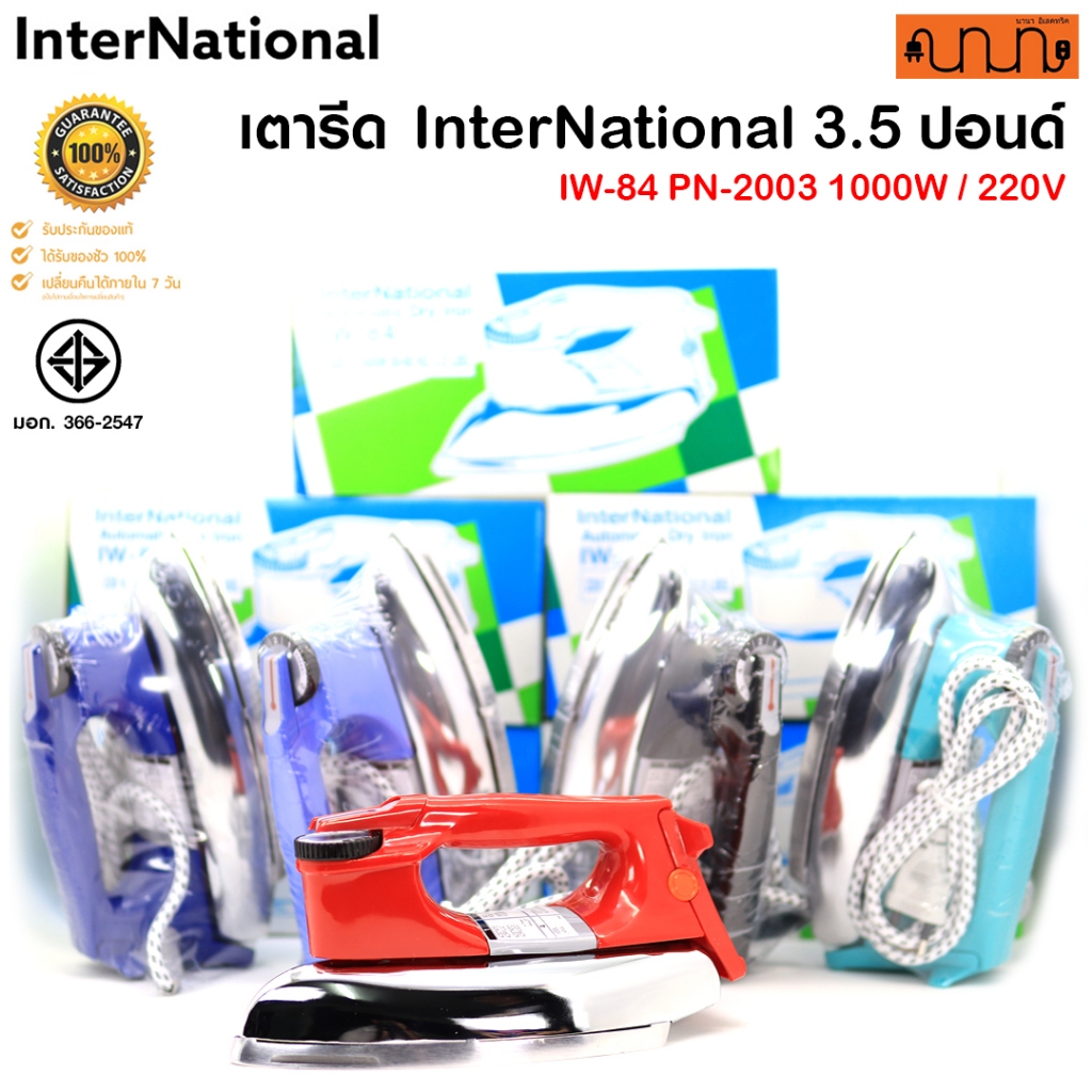 เตารีด InterNational 3.5ปอนด์ IW-84 PN-2003 1000W / 220V มี มอก. 366-2547 / Made in Thailand