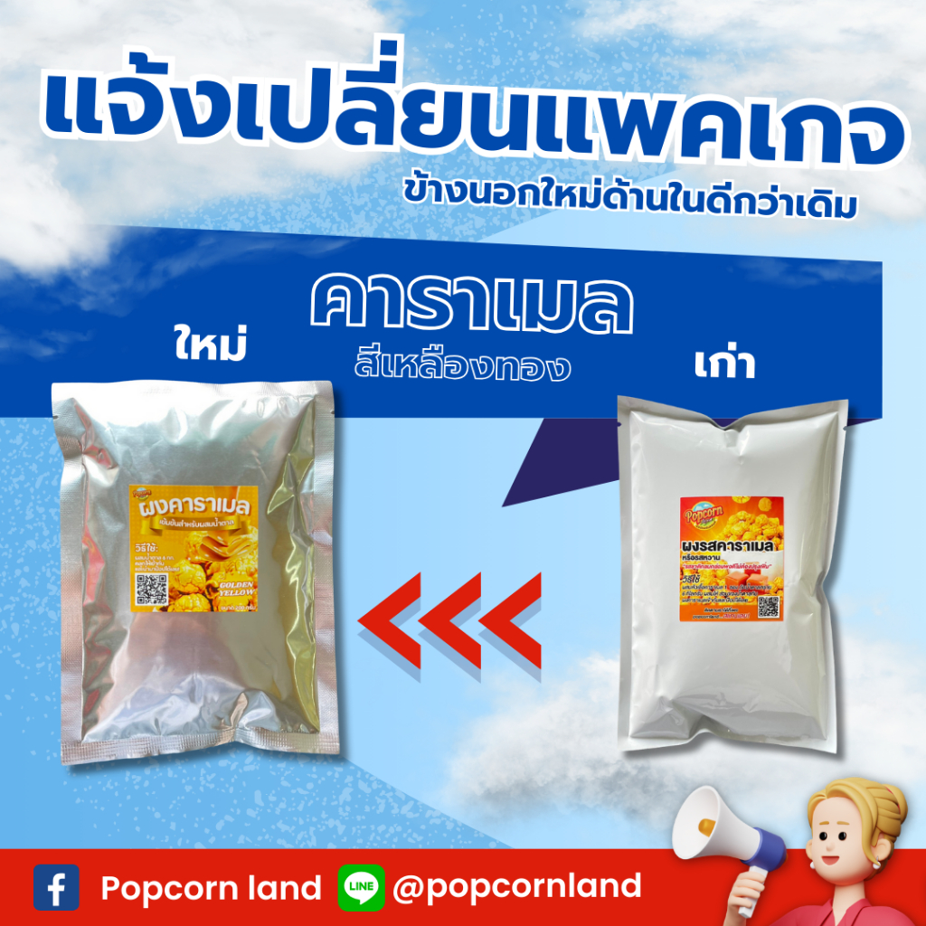 ผงคาราเมลสีเหลืองทอง สำหรับทำคาราเมลป๊อปคอร์น Caramel golden yellow for making popcorn