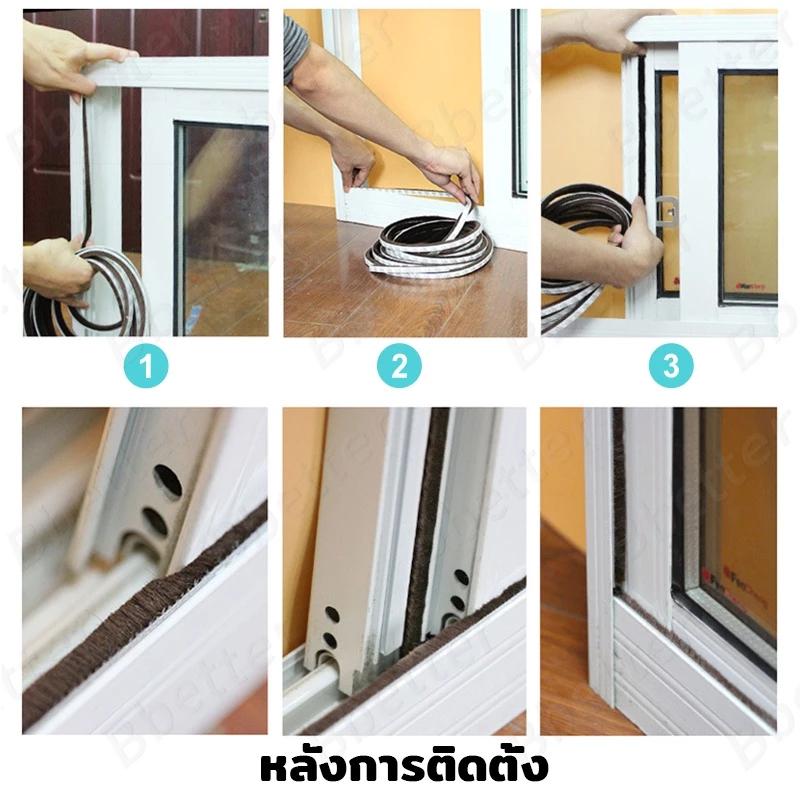[5/10/15เมตร] 👍 3Mเทปซีลขอบประตู สักหลาด หน้าต่าง ตู้โชว์ กันฝุ่น กันแมลง แบบขน ลอกแปะได้เลย เทปสักหลาด ที่กั้นประตู