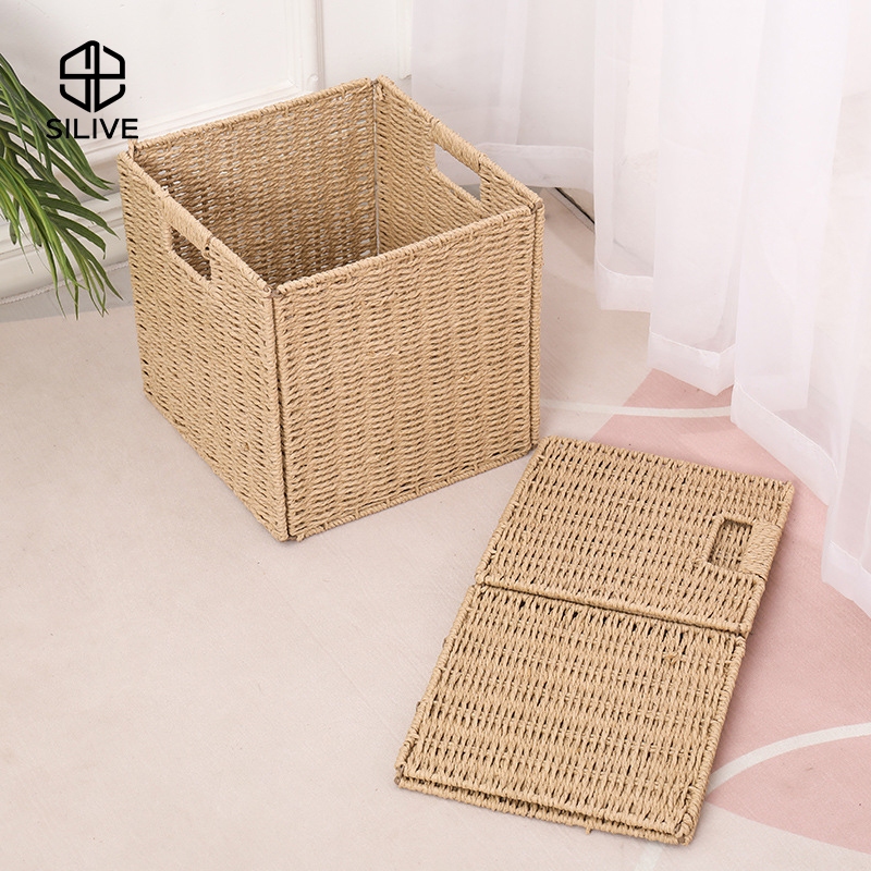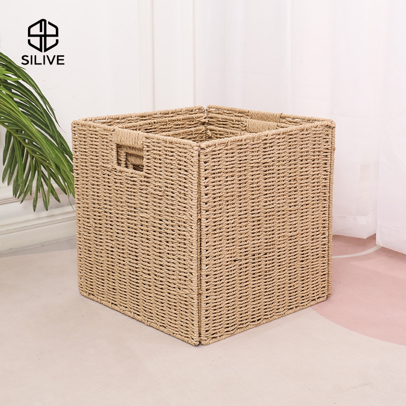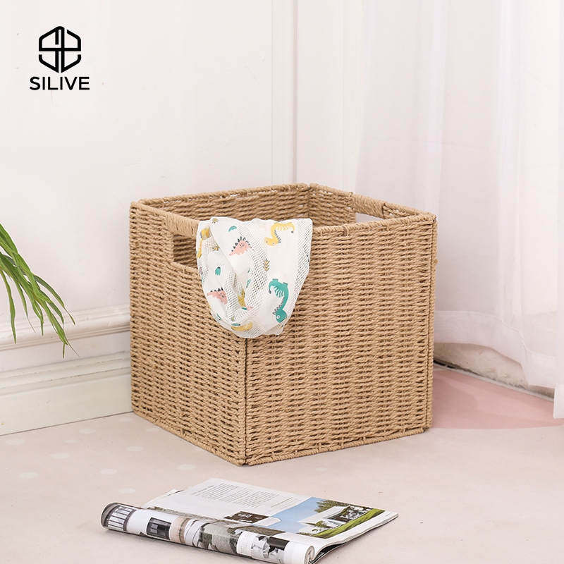 Silive Shop ตะกร้าหวายเทียม กล่องเก็บของ ตะกร้าอเนกประสงค์ #P-D19