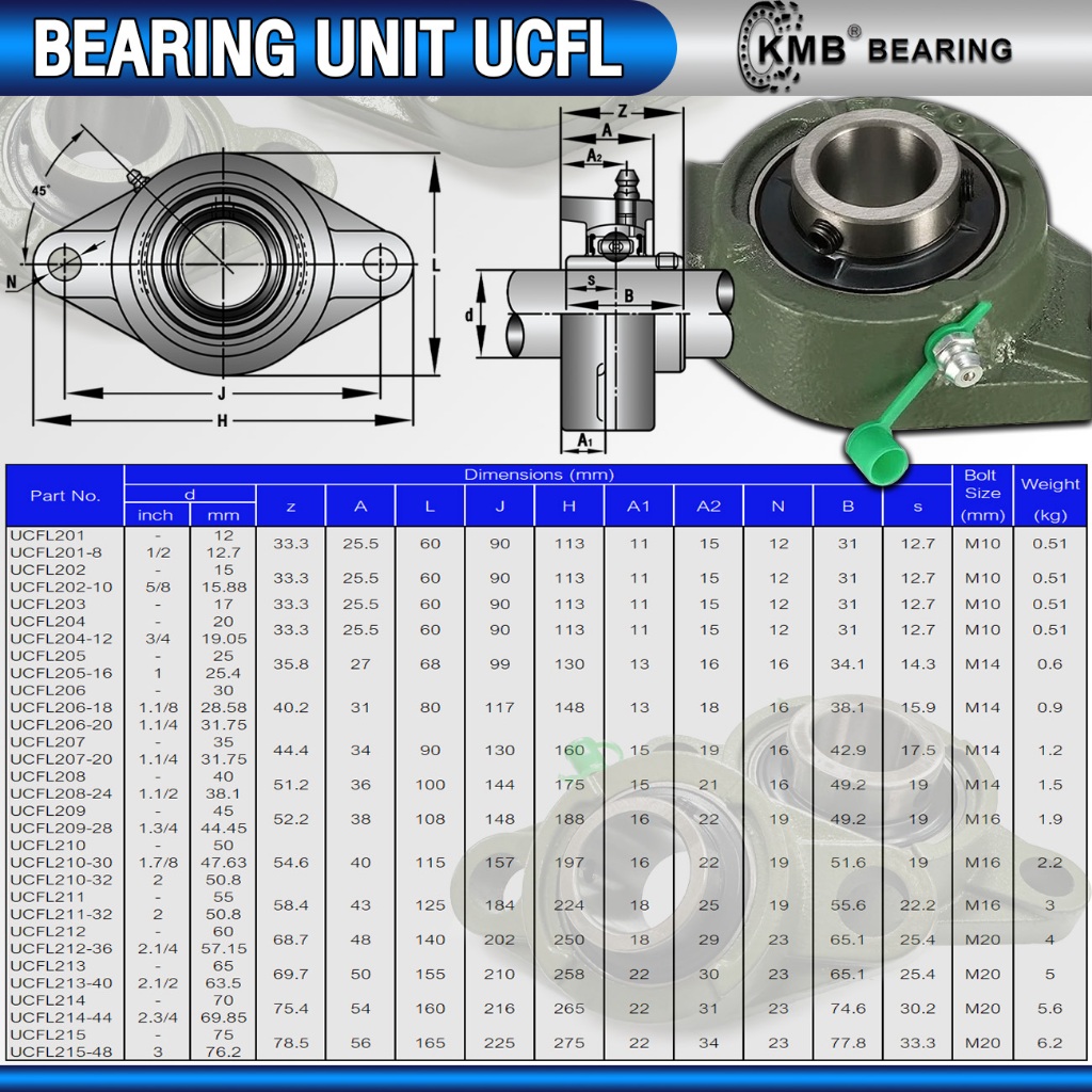 UCFL205 UCFL206 UCFL207 UCFL208 UCFL205-16 UCFL206-18 UCFL207-20 UCFL208-24 KMB ตลับลูกปืนตุ๊กตา BEARING UNITS UCFL