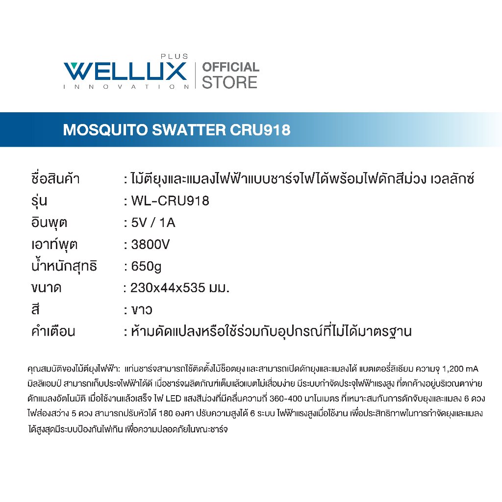 WELLUX ไม้ตียุงมินิมอลพร้อมไฟล่อยุงแสงสีม่วง นวัตกรรมเพียงหนึ่งเดียว Innovative Mosquito Swatter 918