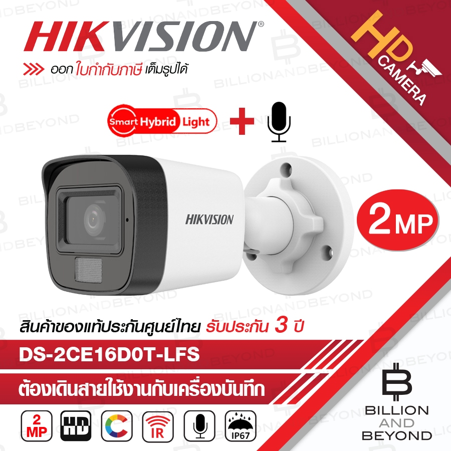 HIKVISION กล้องวงจรปิดระบบ HD 2 MP DS-2CE16D0T-LFS (2.8 / 3.6mm) มีไมค์ในตัว / COLORVU / INFARED ปรับความสว่าง LED ได้