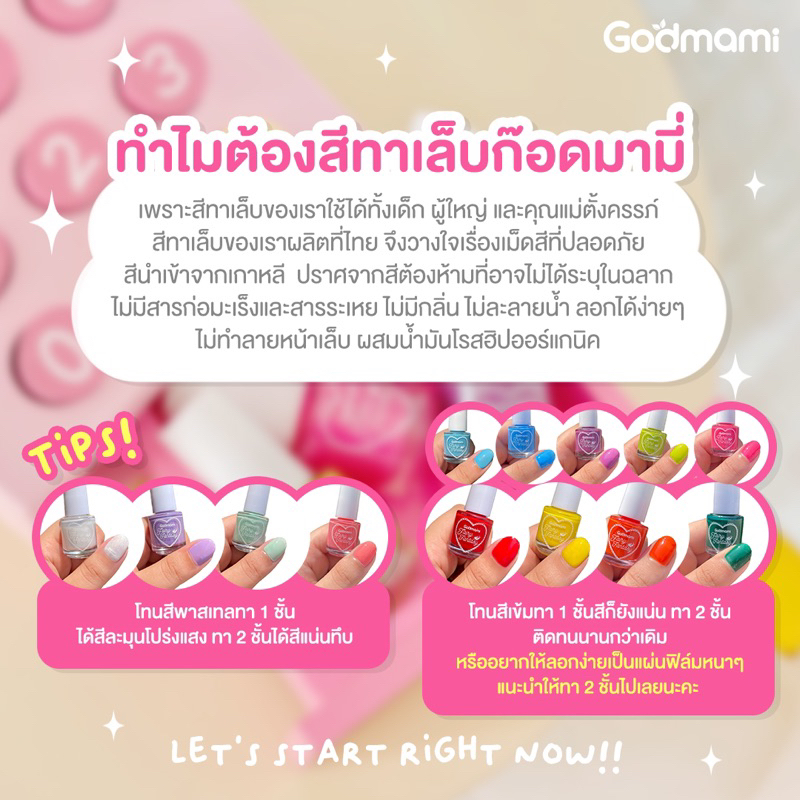 [ผลิตในไทย มั่นใจกว่า🇹🇭]Godmami สีทาเล็บเด็กสูตร 2 in 1 สามารถลอกได้ ปราศจากสารเคมีอันตราย ติดทนกว่าเดิม