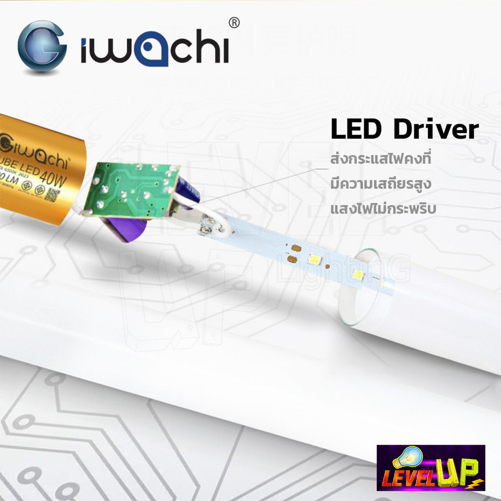 IWACHI หลอดไฟนีออน หลอดประหยัดไฟ LED TUBE T8 40W ขั้วสีทอง หลอด LED ยาว สว่างเต็ม 4,600 LM หลอดไฟยาวแสงสีขาว DAYLIGHT