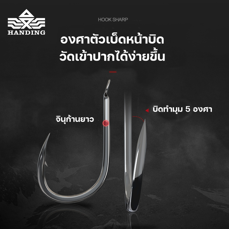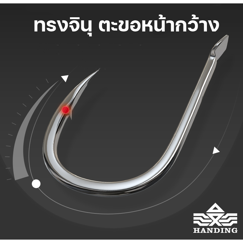 ตัวเบ็ด Handing ทรงจินุ (มีเงี่ยง) แข็งแรงทนทาน เกษรไม่ล้มง่าย ง้างยาก (1 กล่อง มี 50 ตัว)
