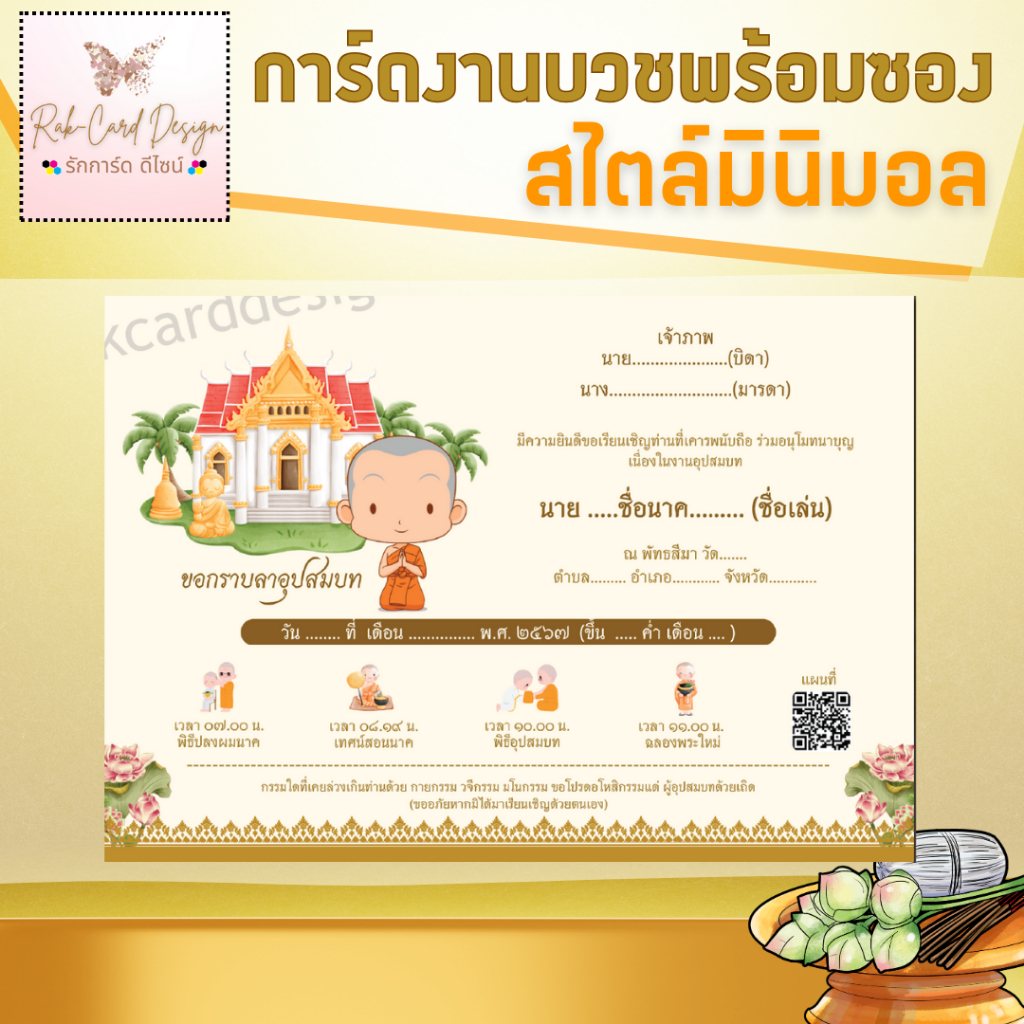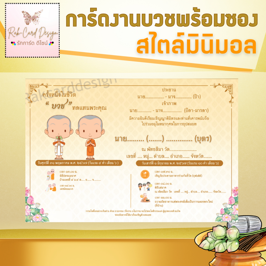 การ์ดงานบวชมินิมอล ขนาด 4x6 นิ้ว และ 5x7 นิ้ว