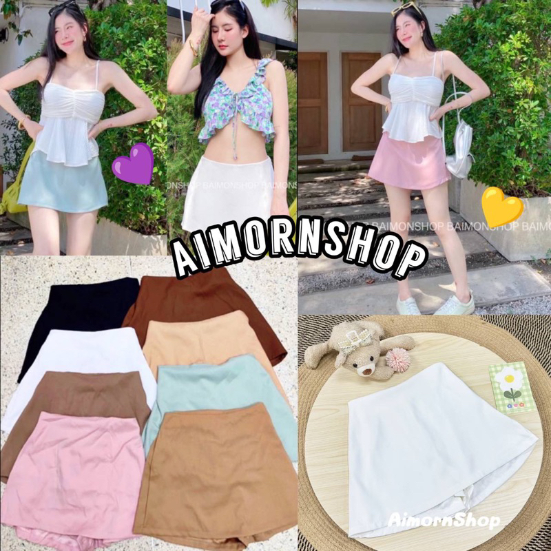 🔥aimorn_shop🔥 กางเกงกระโปรง เอวสูง สุดฮิต 🤎🤎🤎เนื้อผ้าบาร์บี้ แมทซ์ง่ายเข้าได้กับทุกลุค น่ารักฝุดๆ