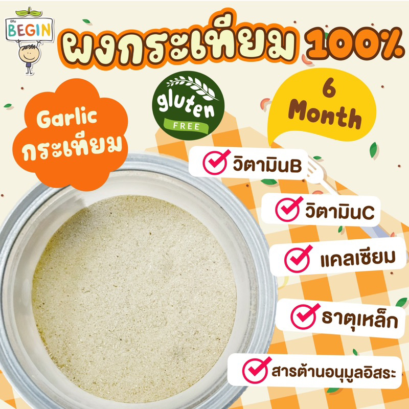 Begin ผงกระเทียม 100% สำหรับเด็ก ผงปรุงรสเด็ก เครื่องปรุงเด็ก ผงทำอาหารเด็ก ผงผัก อาหารเด็ก 6 เดือนขึ้นไป ซอสเด็ก