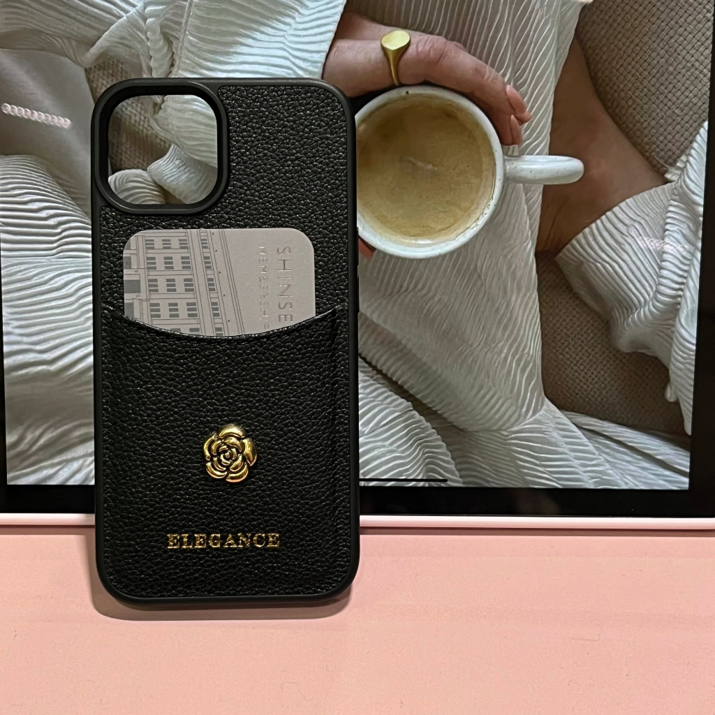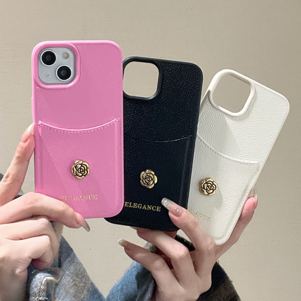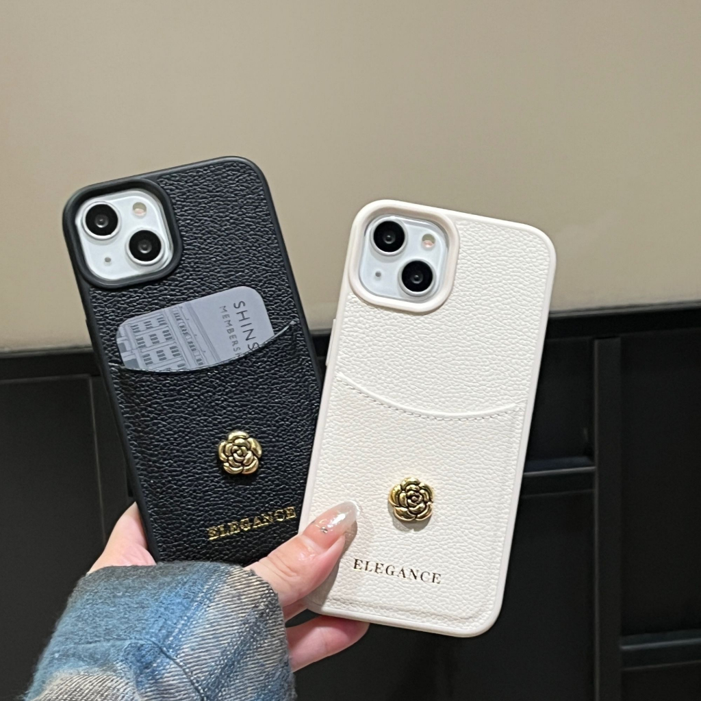 หรูหรา Camellia ช่องใส่การ์ดเคสโทรศัพท์สําหรับ iPhone 17Promax 17Air 16 15 14 13 12 Pro Max Plus PU หนังโทรศัพท์มือถือ