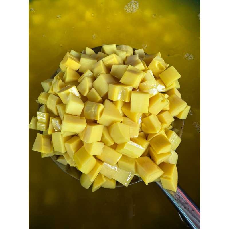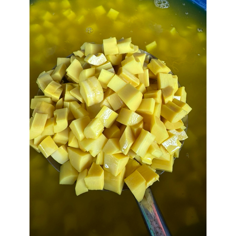 หน่อไม้หั่นต้มปรับกรด ชนิดหั่นเส้นแบน, เต๋า, หั่นเส้นกลม ขนาด 1 กก.