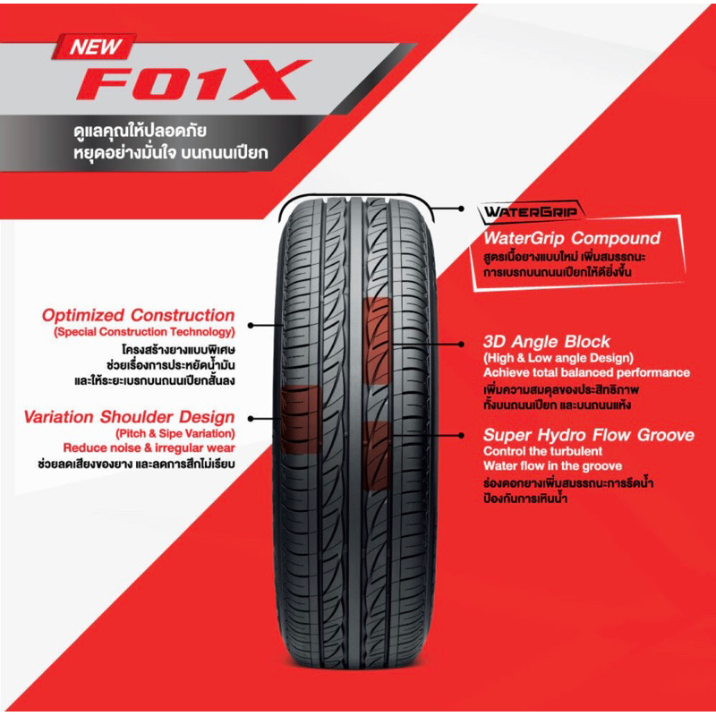 195/55R15 FIRESTONE รุ่น F01X ยางรถยนต์ ขอบ 15(ผลิตโดยบริดจสโตน) - 1 เส้น (ปี 2026)