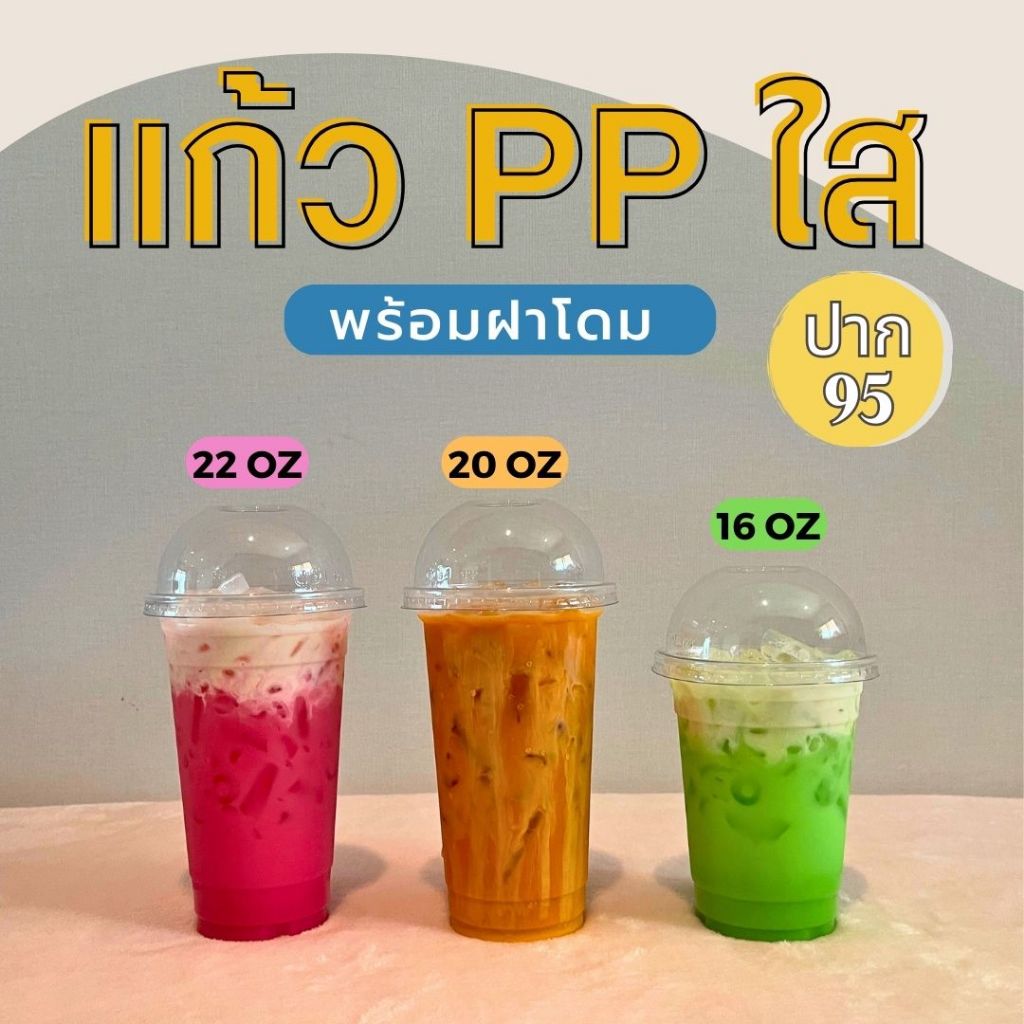 แก้วพลาสติกใสPP 16 20 22 ออนซ์ ปาก95 พร้อมฝา ทรงธรรมดา ราคาถูกมาก พร้อมส่ง!