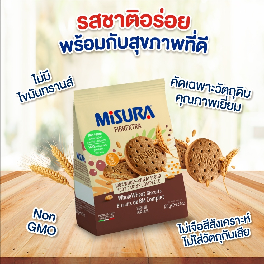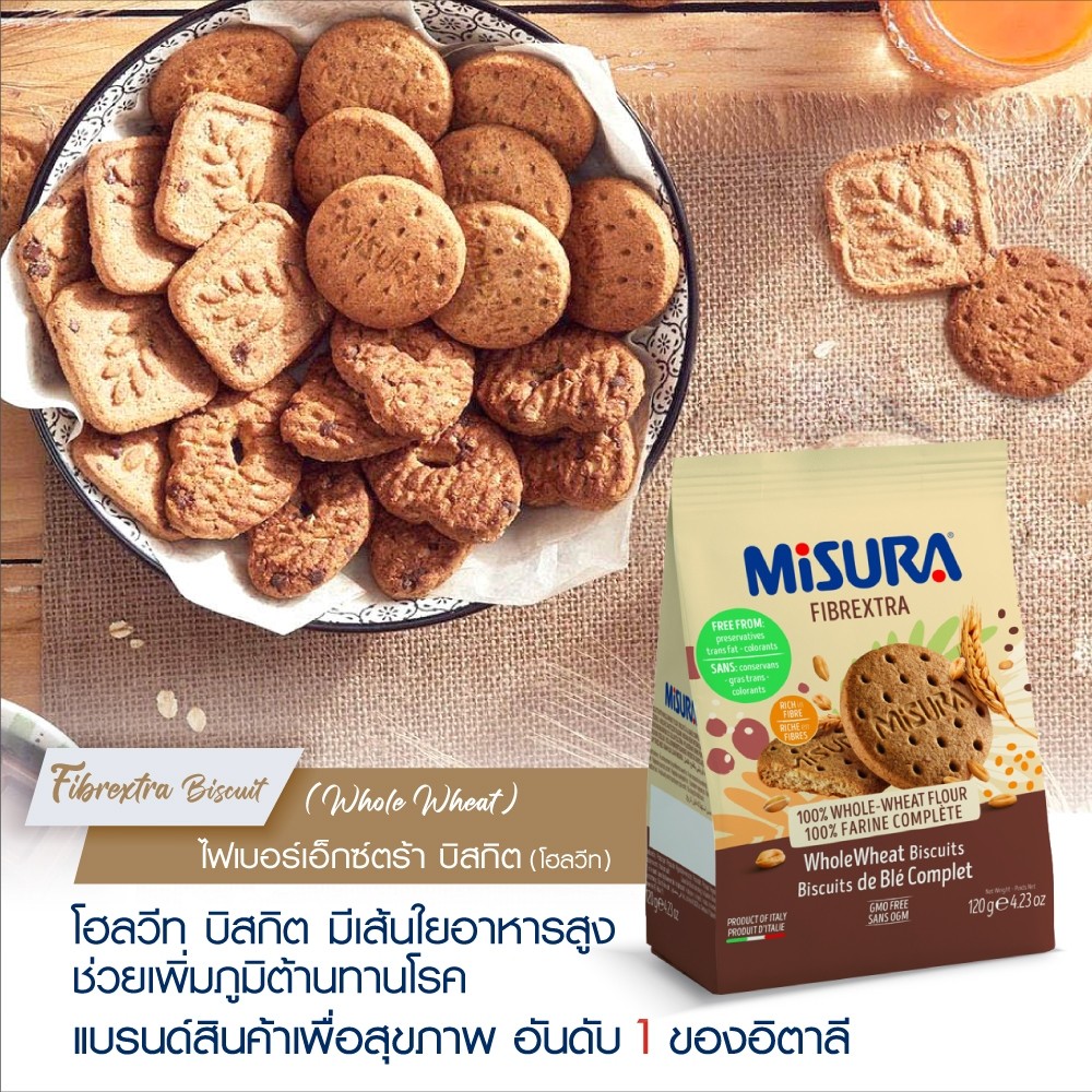 มิซูร่า ไฟเบอร์เอ็กซ์ตร้าบิสกิต (โฮลวีท) 120 กรัม │ Misura Fibrextra Biscuit (Whole Wheat) 120 g