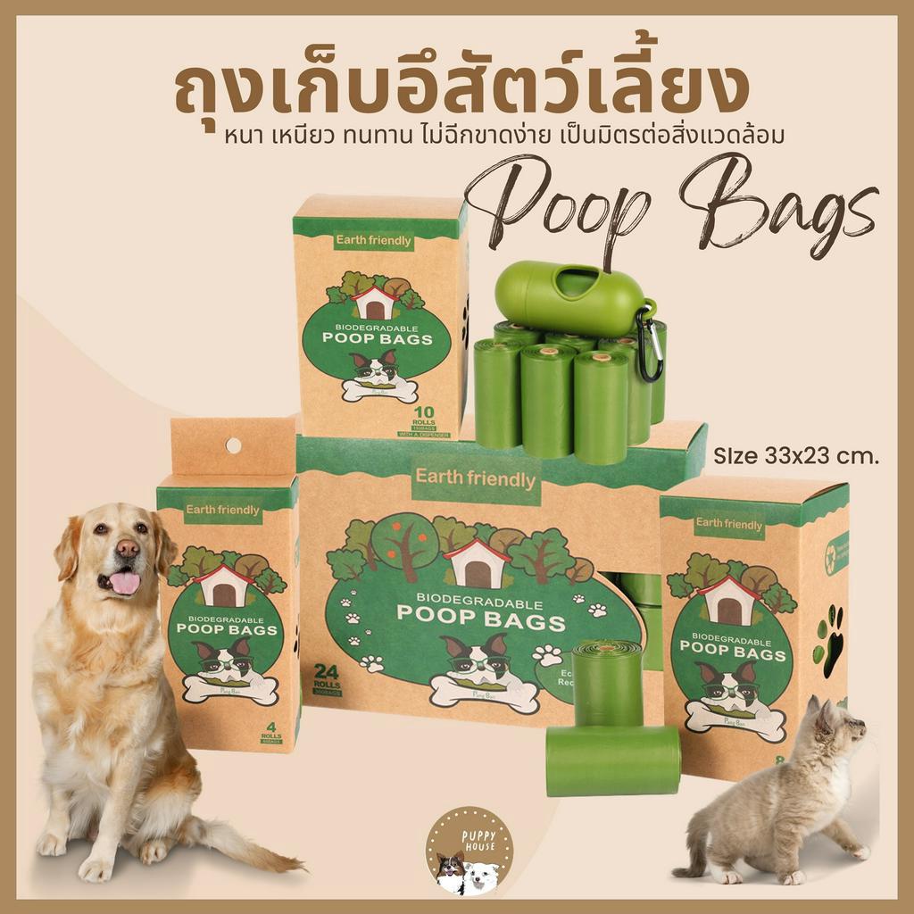 ถุงเก็บอึสัตว์เลี้ยง Poop Bags (15ใบ/ม้วน) หนา เหนียว ไม่รั่วซึม ระงับกลิ่นอึได้ ย่อยสลายได้