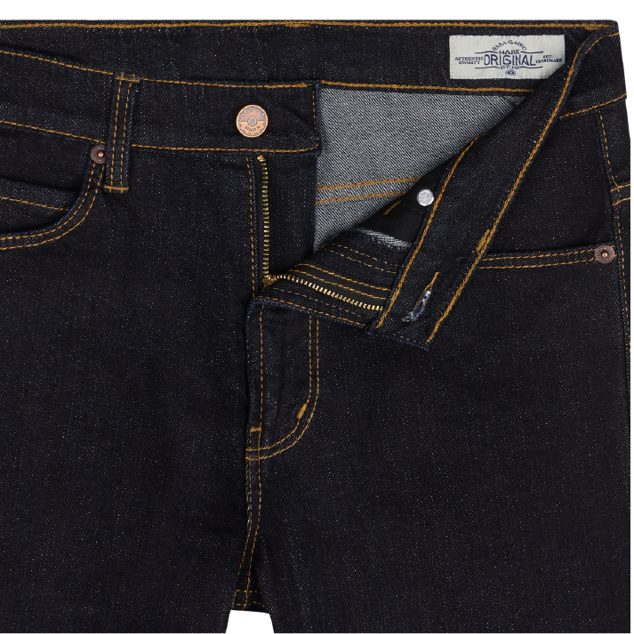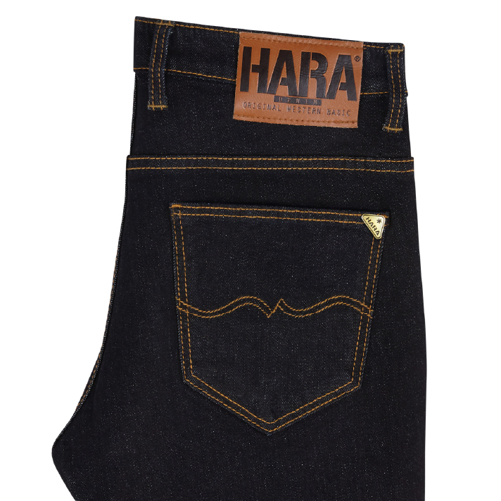 Hara กางเกงยีนส์ สีดาร์ค ด้ายทอง ทรงขากระบอก ปลายขาเล็ก 7.5 นิ้ว HMV1-9005-02