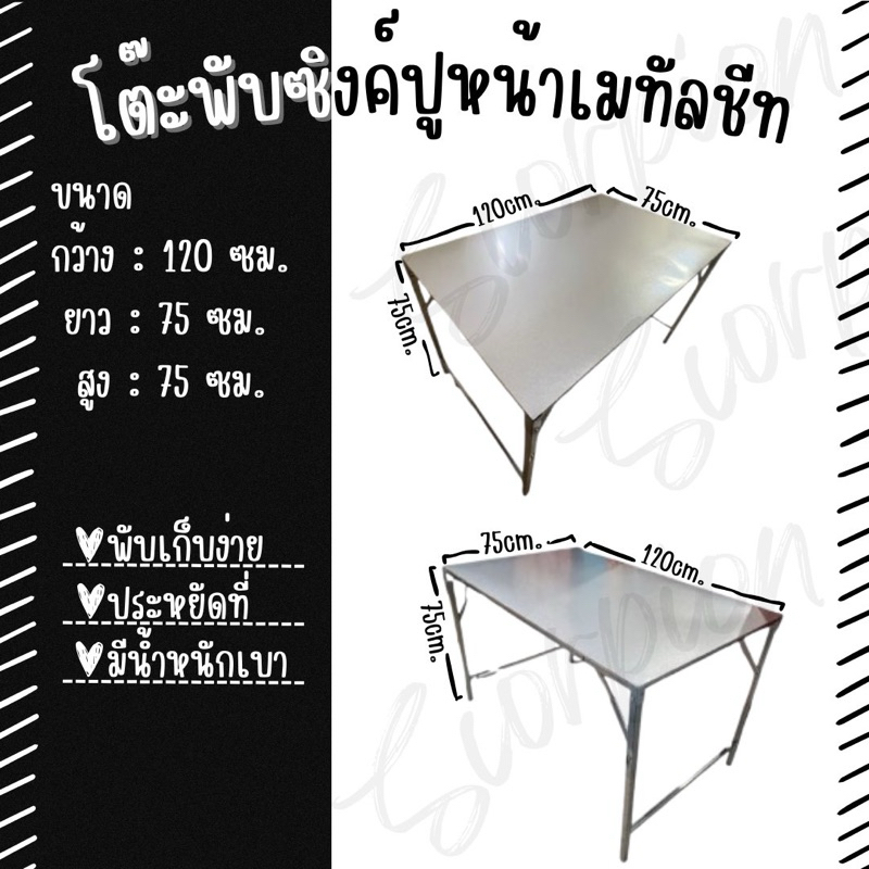 โต๊ะพับซิงค์ ขาไม่ชุบสี ปูหน้าเมทัลชีท ขนาด 90 , 120 , 150 , 177 และ200ซม